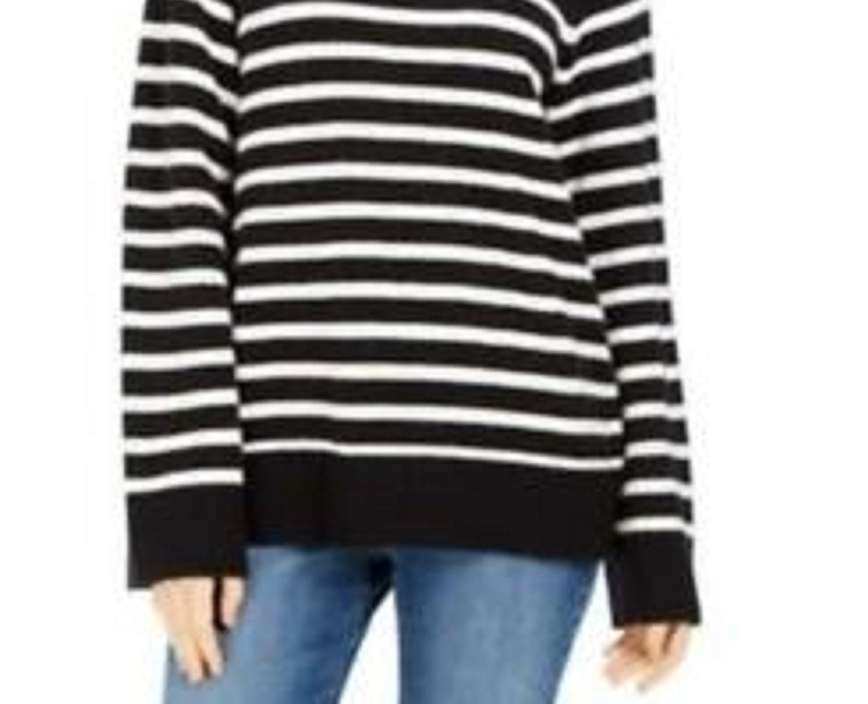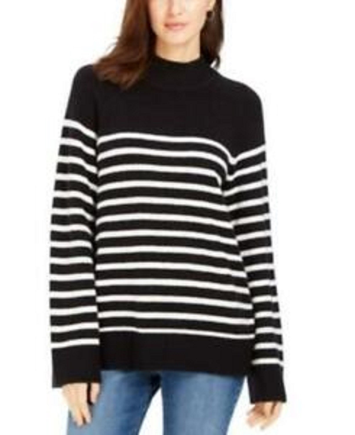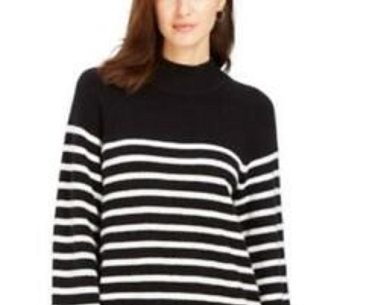 Charter Club Women's Striped Mockneck Sweater Black Size Extra Small