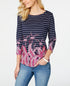 Charter Club Women's Striped Paisley Print Top Blue Size Small