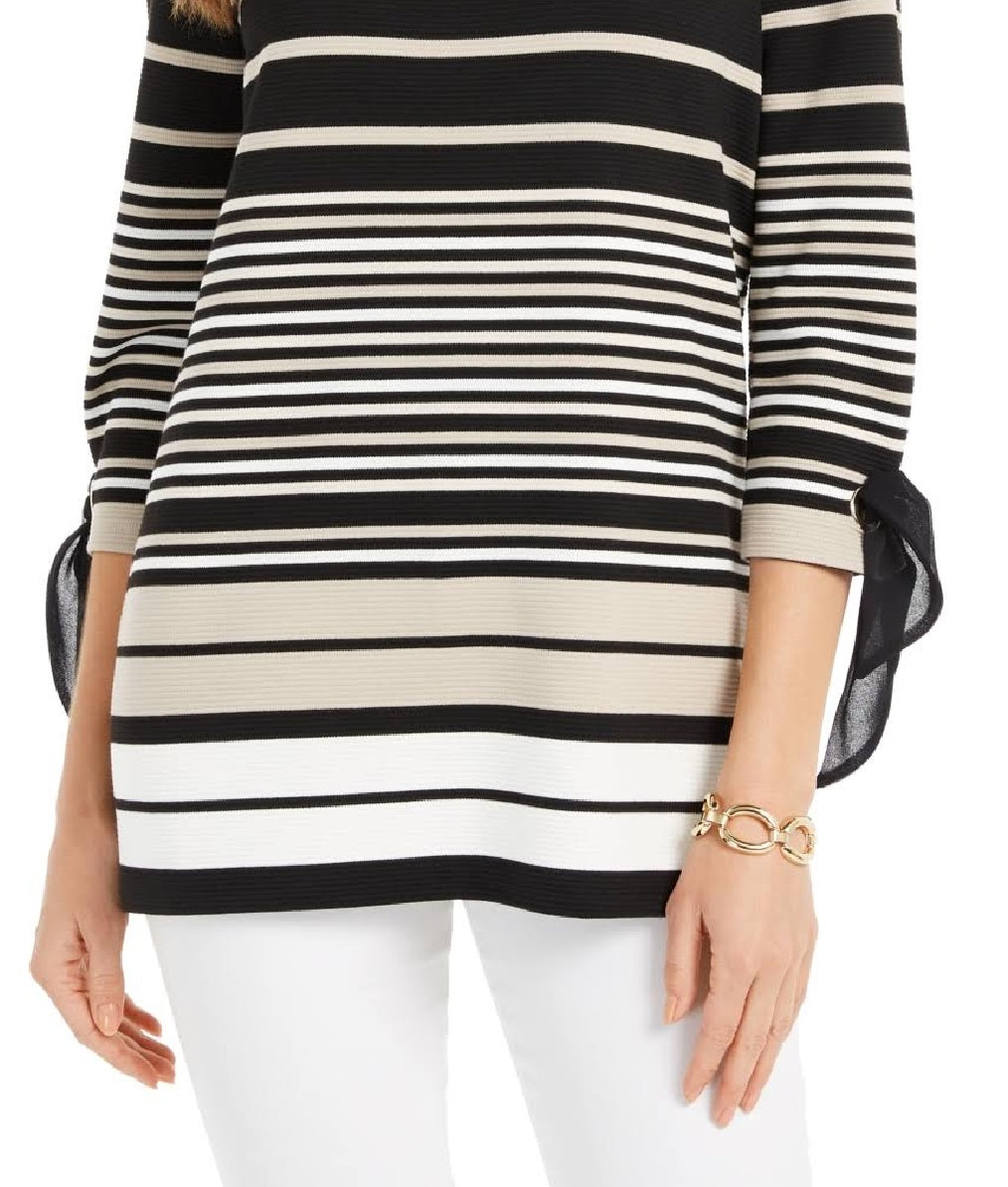 Charter Club Petite Striped Tie-Sleeve Top| Other Petite Clothing - Tops (Clearance)