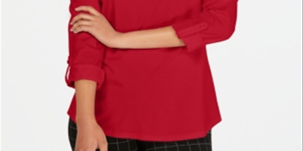 Charter Club Women's Supima Cotton Split Neck Top Red Size XX-Large