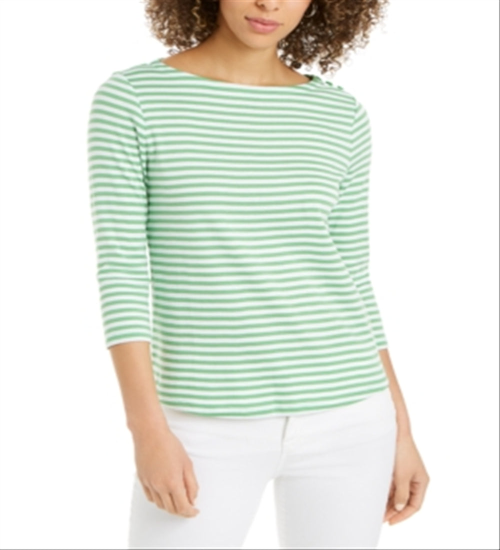 Charter Club Women's Supima Cotton Striped Top Green Size XX-Large