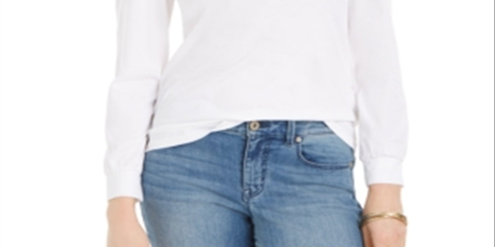 Charter Club Women's Supima Puff-Sleeve Top White Size XS
