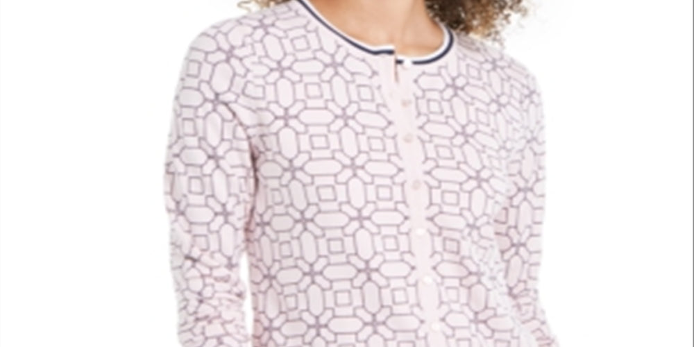 Round neckline| Button-front closure| Duotone tipped trim at neckline