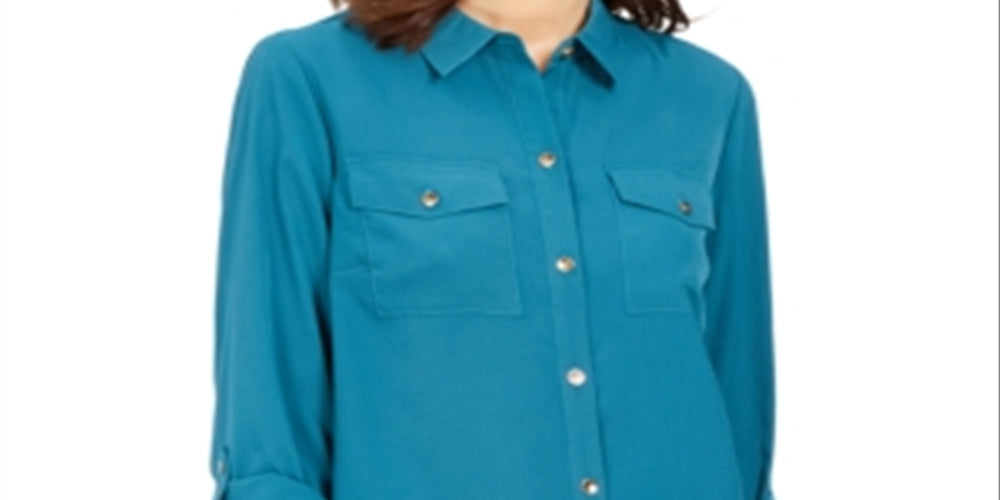 Charter Club Women's Two Pocket Shirt Green Size Small
