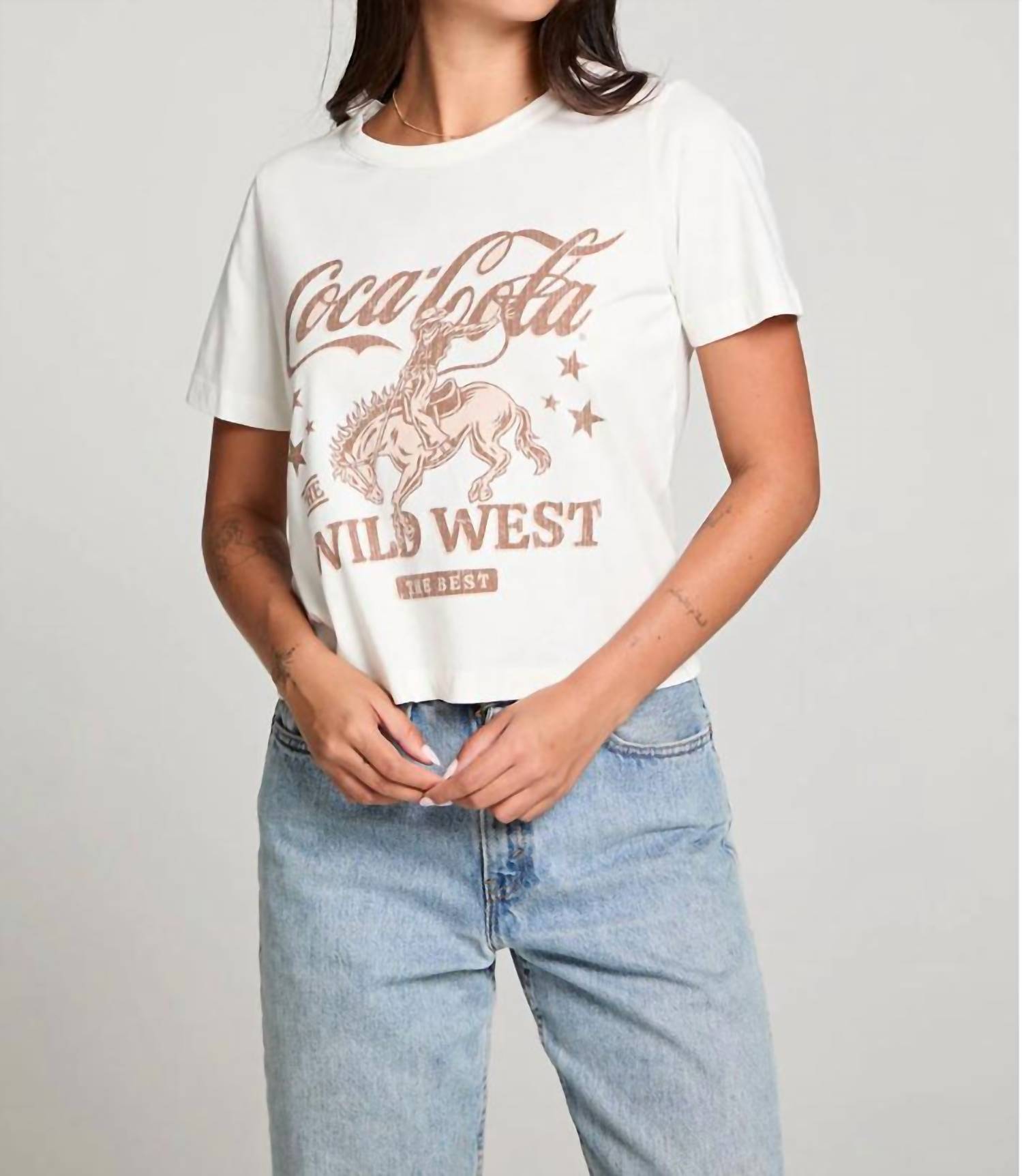 This classic, short sleeve tee will be your go-to staple this season and beyond. Introducing the Women's Coca Cola Wild West Top by Chaser, a must-have for summer streetwear enthusiasts. This tee, crafted from breathable cotton, features short sleeves and a classic crewneck design for ultimate comfort. With its eye-catching graphic pattern, this pull-on top is perfect for vacation vibes. Note that care instructions are not specified.