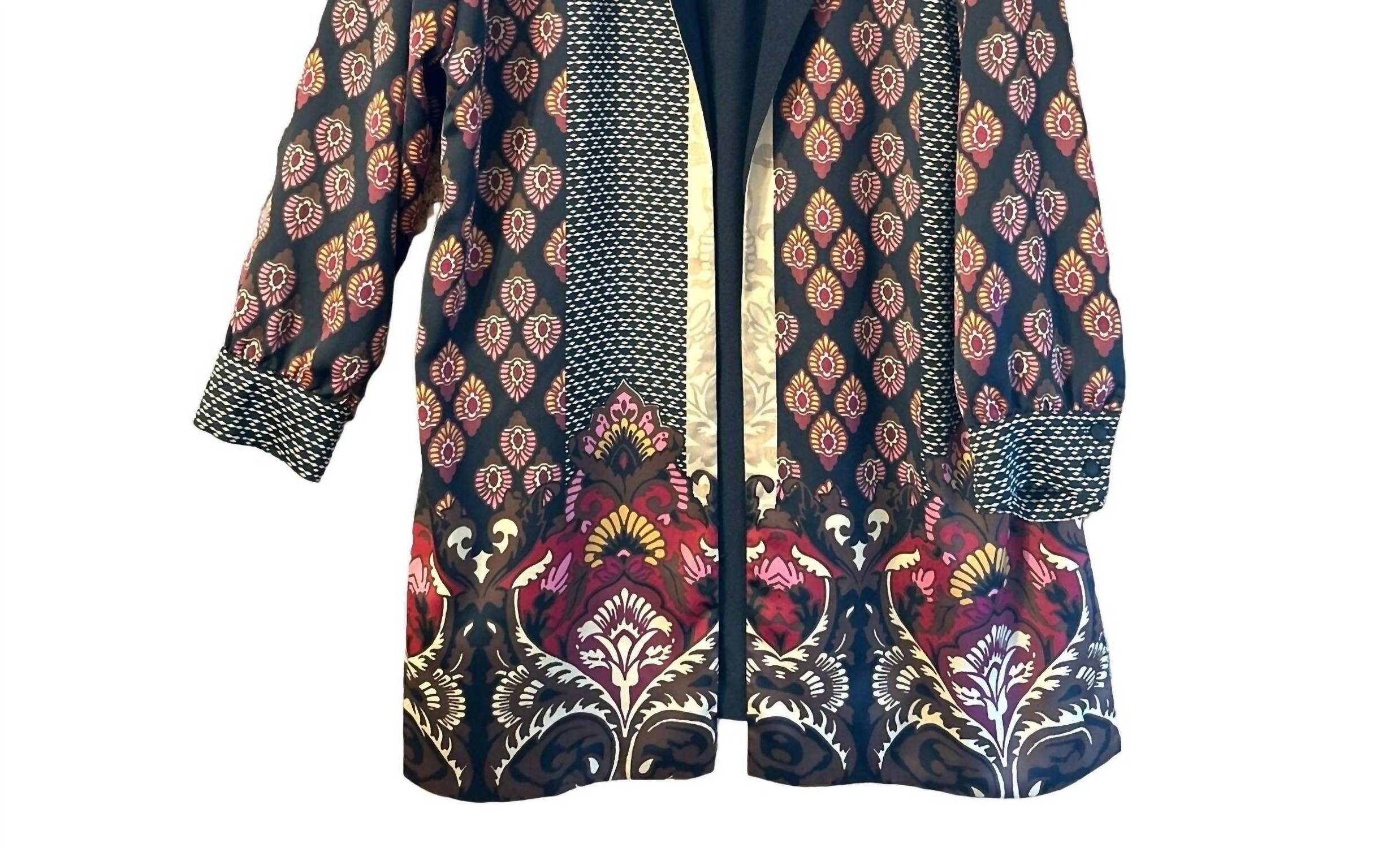 This cardigan will be a sweater-rotation favorite. Introducing the Women's Mixed Print Duster Jacket by Chico's, a vibrant piece in a colorful multi-pattern design. This long sleeve jacket boasts a polyester construction for comfort and style. With a convenient pull-on closure, this item offers easy wear. Care instructions recommend dry cleaning to maintain its bold, patterned look.