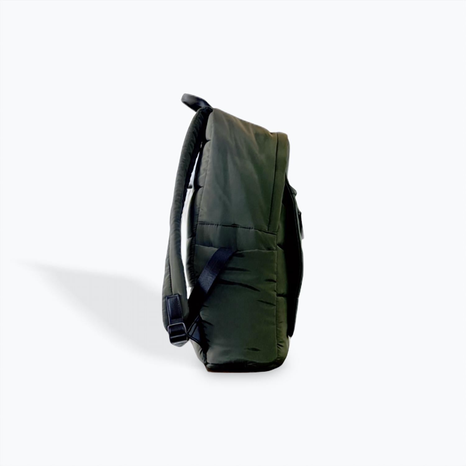 Stylish and functional accessory in a captivating black and olive colorway. Crafted from durable nylon. Offers a sleek and modern design perfect for any on-the-go lifestyle. Seamlessly combines practicality with an understated elegance. Elevate your daily ensemble with this essential backpack.