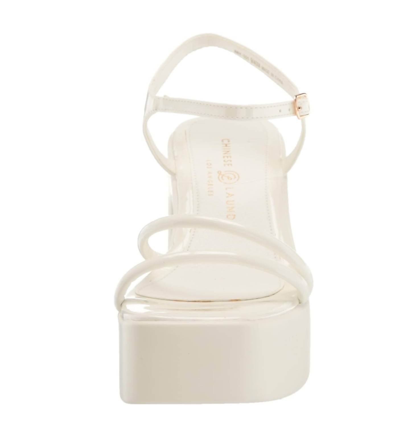 This sandal will take you from brunch to dinner and everything in between. Step into elegance with the Avianna Platform Sandal by Chinese Laundry, an essential shoe with a sleek platform design. Crafted from cream patent leather, this sandal features an open toe and adjustable strap for added comfort. The platform heel is 4.25 inches tall, with a 1.75-inch platform, elevating any summer dinner party look. Perfect for a minimalist trend, these sandals are a must-have for the season.
