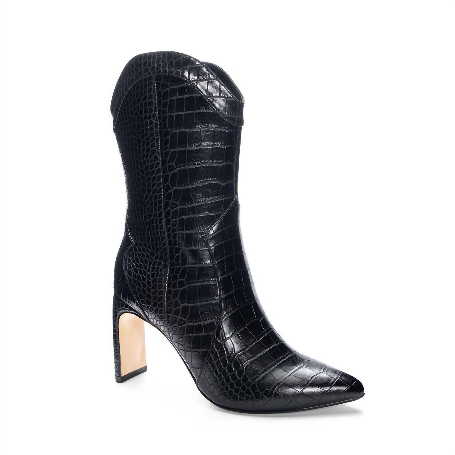 A stylish boot with a comfortable fit and the perfect amount of height. These classic boots are the perfect addition to any outfit and can be worn season after season. Step out in style with the Chinese Laundry Forester Boot, a sleek addition to any wardrobe. Crafted from vegan, manmade leather, these black heeled boots feature a chic pointed toe and a sophisticated 3.5-inch spool heel. Perfect for elevating your look, these mid-height heels are designed with elegance and comfort in mind. Ideal for women seeking fashionable footwear that doesn't compromise on ethical materials.