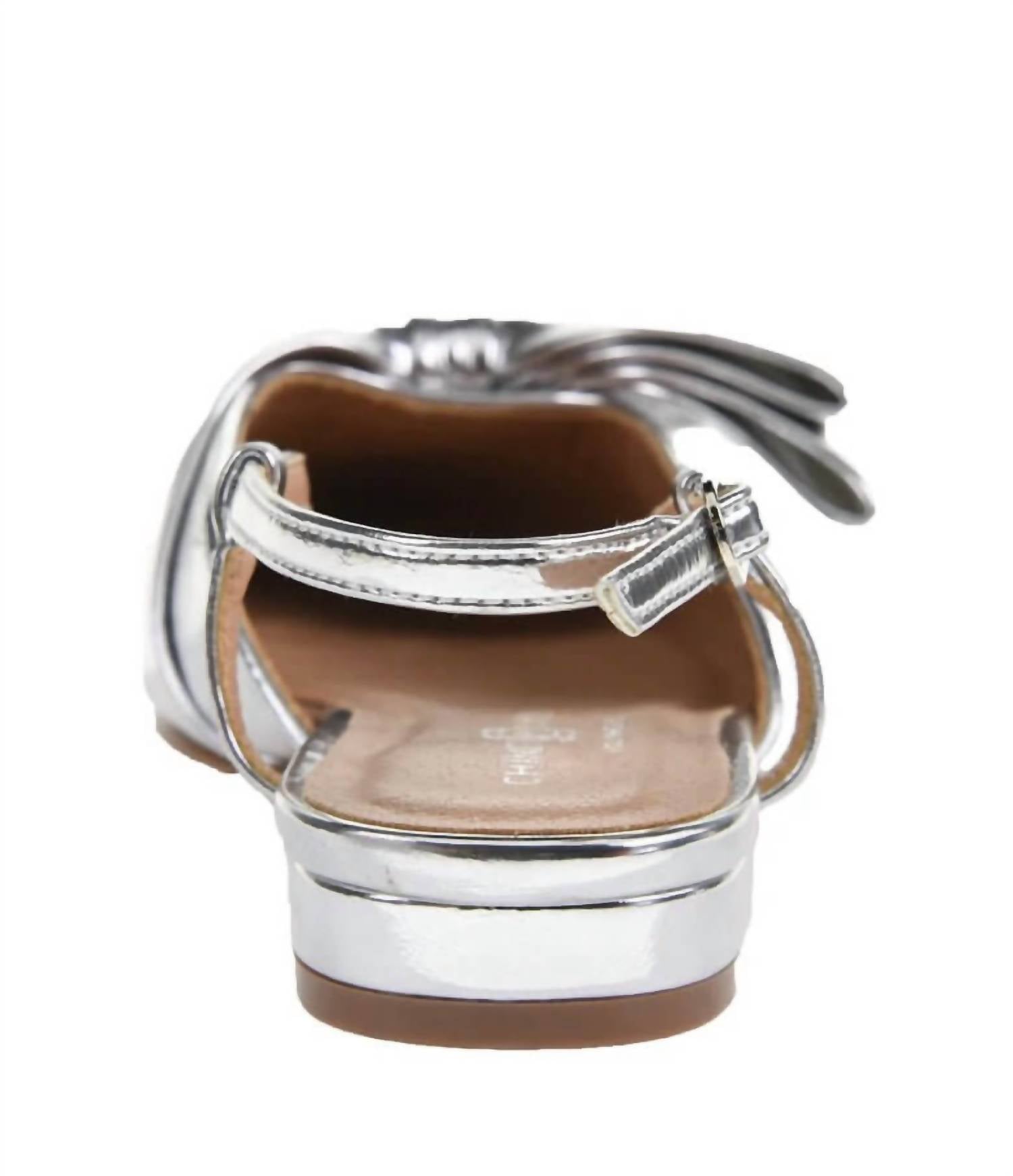 Loafers so versatile you can wear them with just about anything. Meet the Harmony Metallic Ankle Strap Flat by Chinese Laundry, designed for the modern minimalist with a flair for making memorable exits. With a sleek pointy toe and a wrapped block heel, this shoe combines elegance and comfort, perfect for any occasion. Featuring a striking silver metal color, these flats are crafted with a focus on understated glamour. Heel height measures 0.625 inches, and they are available in sizes 6 to 10, fitting true to size for an effortless fit.
