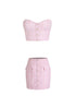 Experience timeless elegance with the Women's Tweed Skirt Set by Cider, perfect for the modern minimalist wardrobe. This strapless set in pink and white textured tweed includes a chic mini skirt adorned with pearl buttons and faux pocket flaps, creating a tailored finish. Crafted for a flattering fit, its A-line silhouette is ideal for spring occasions such as holiday parties. Origin information and care instructions are not provided, offering styling flexibility with both matching pieces and individual separates.