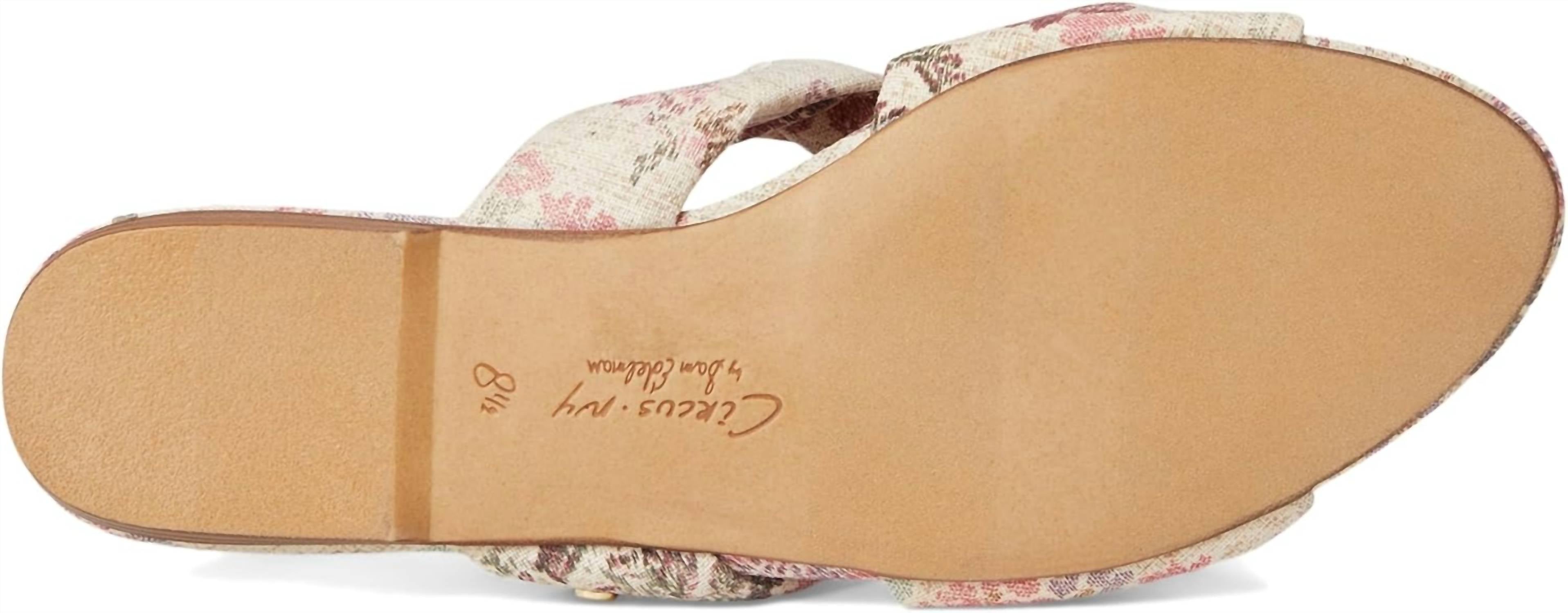 Flowy dresses, cropped pants, and even jumpsuits... this sandal works with them all! Step into summer with the Women's Marissa Sandal by Circus by Sam Edelman, a Boho Chic essential perfect for a dinner party or Thanksgiving event. Crafted from a stylish blend of satin and fabric, these sandals feature a sleek two-band upper and an open toe design for unmatched comfort. Offering a flat heel with a subtle 0.375-inch height, these sandals come in a beautiful Blush Multi Linen color, adding elegance and versatility to your wardrobe. Embrace the medium width fit and synthetic insole, ideal for adult women seeking style and comfort this season.
