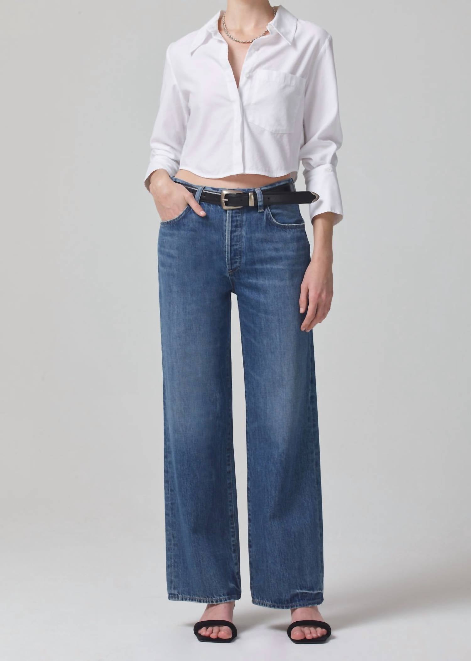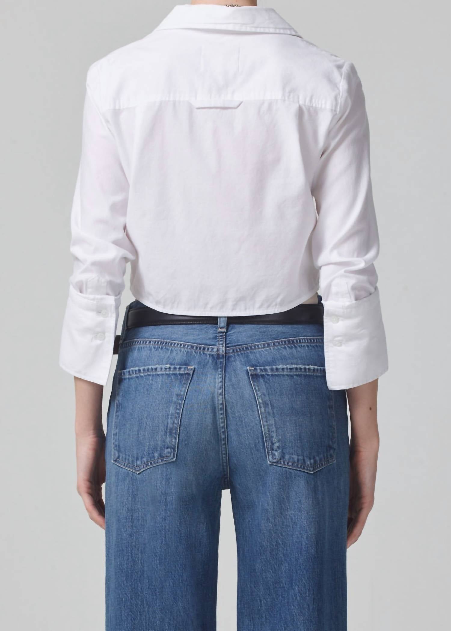 Show a little skin in this cute and casual crop top. Introducing the Bea Crop Top by Citizens of Humanity, a crisp white piece perfect for spring style. With long sleeves and a button closure, this top is crafted from 100% cotton, offering a lightweight touch with a cropped silhouette that hits right at the waist. Designed for versatility, it's perfect for pairing with high-waist denim and fits true to size. Care for this piece is simple with machine wash cold instructions, ensuring easy maintenance for your minimalist wardrobe.