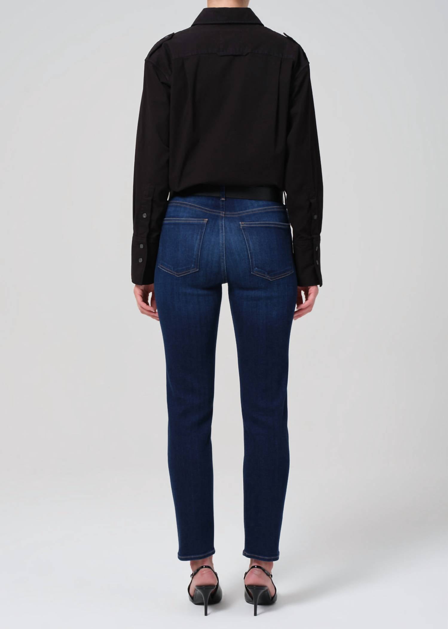 Experience the perfect blend of comfort and style with the Isola Slim Fit Jeans by Citizens of Humanity, crafted in a sleek Lotus hue. Featuring a comfortable mid rise and full length, these jeans are designed to flatter with their slim fit and skinny leg profile, ideal for those updating their skinny jeans collection. The jeans boast a soft stretch for all-day comfort, a zip fly closure, and measure a 10.5" rise with a 29" inseam and a 12" leg opening. Composition: 81% Cotton, 11% Lyocell, 6% Polyester, 2% Elastane. Care: Machine wash.