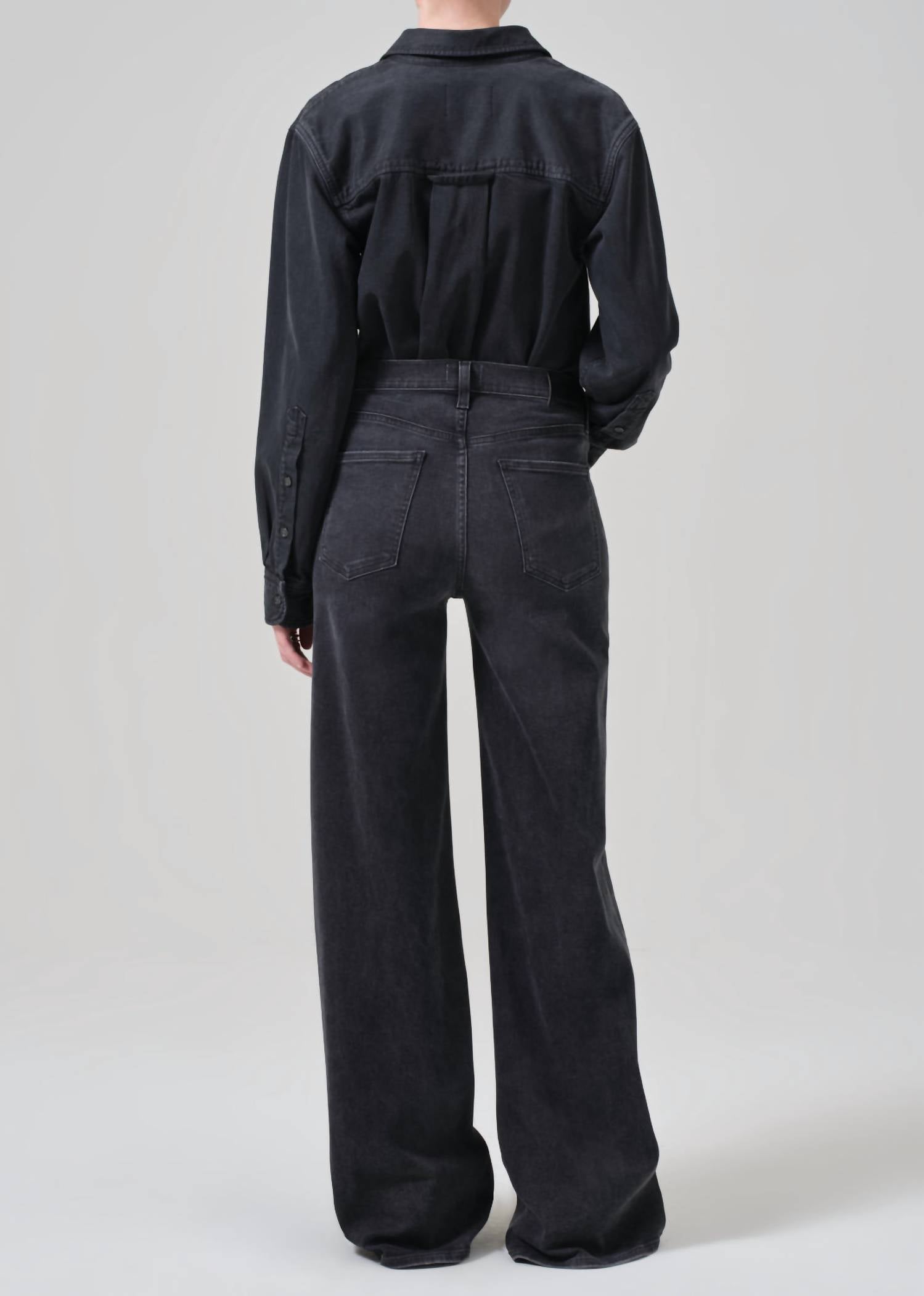 Just as cute as they are comfortable. Discover the Lolli Mid Rise Baggy Jeans by Citizens of Humanity, an essential addition to your wardrobe. Crafted with a cotton blend of 88% cotton, 10% polyester, and 2% spandex, these jeans feature a relaxed wide-leg fit that is both comfortable and trendy. With a mid-rise waist of 10.75 inches, a 32-inch inseam, and a 24.5-inch leg opening, they provide a flattering silhouette. Styled in a saturated washed black Reflection color, they offer a polished look with a button closure and are easy to care for with machine wash and tumble dry instructions.