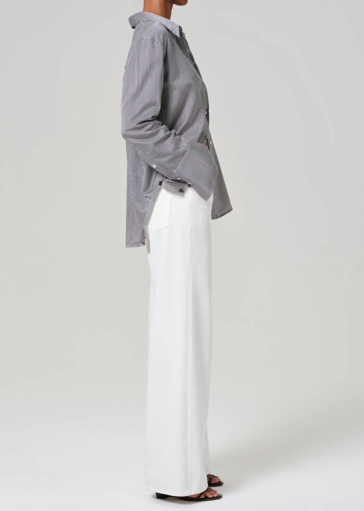 A flattering silhouette that's suprisingly versatile. Discover the Paloma Wide Leg Jeans by Citizens of Humanity, a nod to the early 2000s with a relaxed fit perfect for the modern wardrobe. These jeans feature a high rise of 11.75 inches and a flowing wide leg with a leg opening of 24 inches, crafted from a 65% Lyocell, 35% Cotton blend for a rigid, lightweight feel. The soft white denim with a zip closure and 32-inch inseam offers vintage detailing ideal for pairing with any top. Care has been made easy with machine wash and tumble dry instructions. Model is 5'10" and wears a size 27.