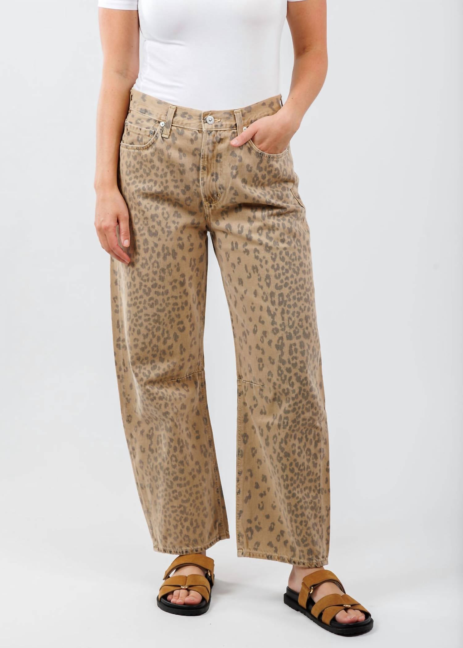 A flattering silhouette that's suprisingly versatile. Elevate your style with the Women's Miro Relaxed Jeans by Citizens of Humanity, featuring a Natural Cheetah pattern. These jeans boast a mid-rise and relaxed fit, offering a tapered bootcut leg silhouette for a modern aesthetic. Crafted from 100% cotton, the denim is rigid and non-stretch, ensuring durability and an authentic feel. Closure: Zip fly. Care: Machine wash and tumble dry for easy maintenance. With a 12" rise, 27.5" inseam, and 17.5" leg opening, they fit true to size. Model wears a size 27 (5'6" height, 34" bust, 28.5" waist, 31" hip, 29" inseam).
