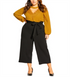 the stylish tie pant is an unforgettable wardrobe staple! featuring a pull-on style with a removable belt feature and a wide elasticated back waistband| these pants include a relaxed fit for added comfortability| key features include; - pull on style - removable self tie front feature - wide back elasticated waistband - wide leg culotte pant - lightweight stretch fabrication - relaxed fit for an office-ready ensemble| pair these pants with mary-janes and a button-down blouse