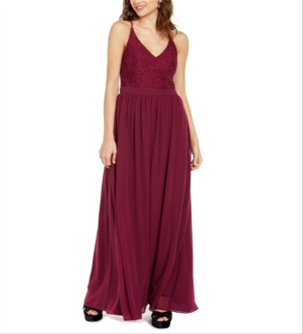 City Studios Juniors' Lace & Chiffon Gown Juniors Juniors' Clothing - Dresses
