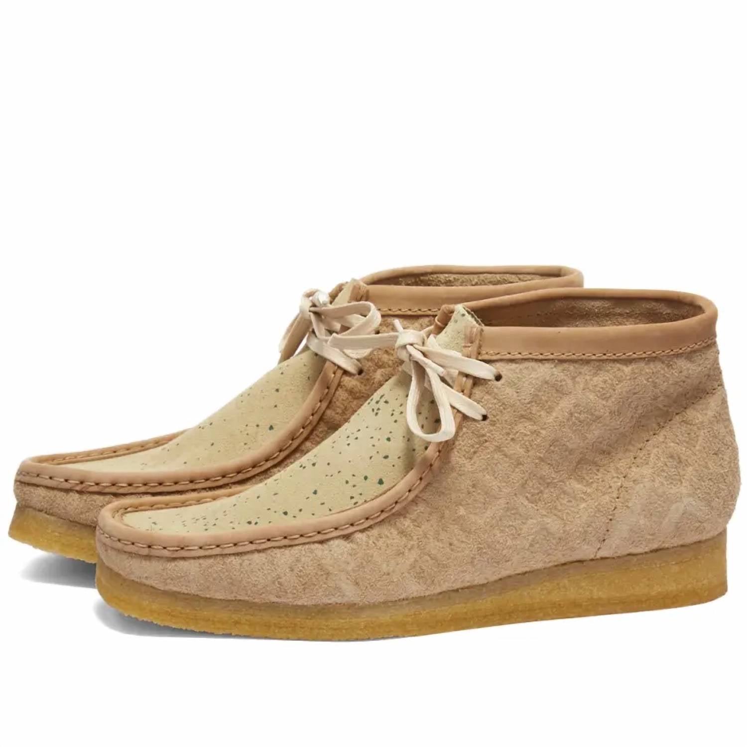 Step into style. Feature a premium material upper and a breathable leather lining, ensuring comfort and quality. With a low platform heel. Maintain their classic round toe shape and are firmly anchored by a natural rubber pebble crepe sole. Enjoy the added details of tonal fobs, channeling Clarks Originals and Wallabee heritage.