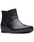 Asymmetrical lines and a sleek wedge heel lend modern savvy to the stylish Hope Track booties by Clarks Collection.| 1-1/2 heel| Shaft height; 4-1/8; Circumference; 2-3/4; measured on a size 6| Round-toe ankle booties with zipper closure| Asymmetrical strap detail| Cushion Soft technology and cushioned insole for added comfort| Available in medium (M) and wide (W) widths
