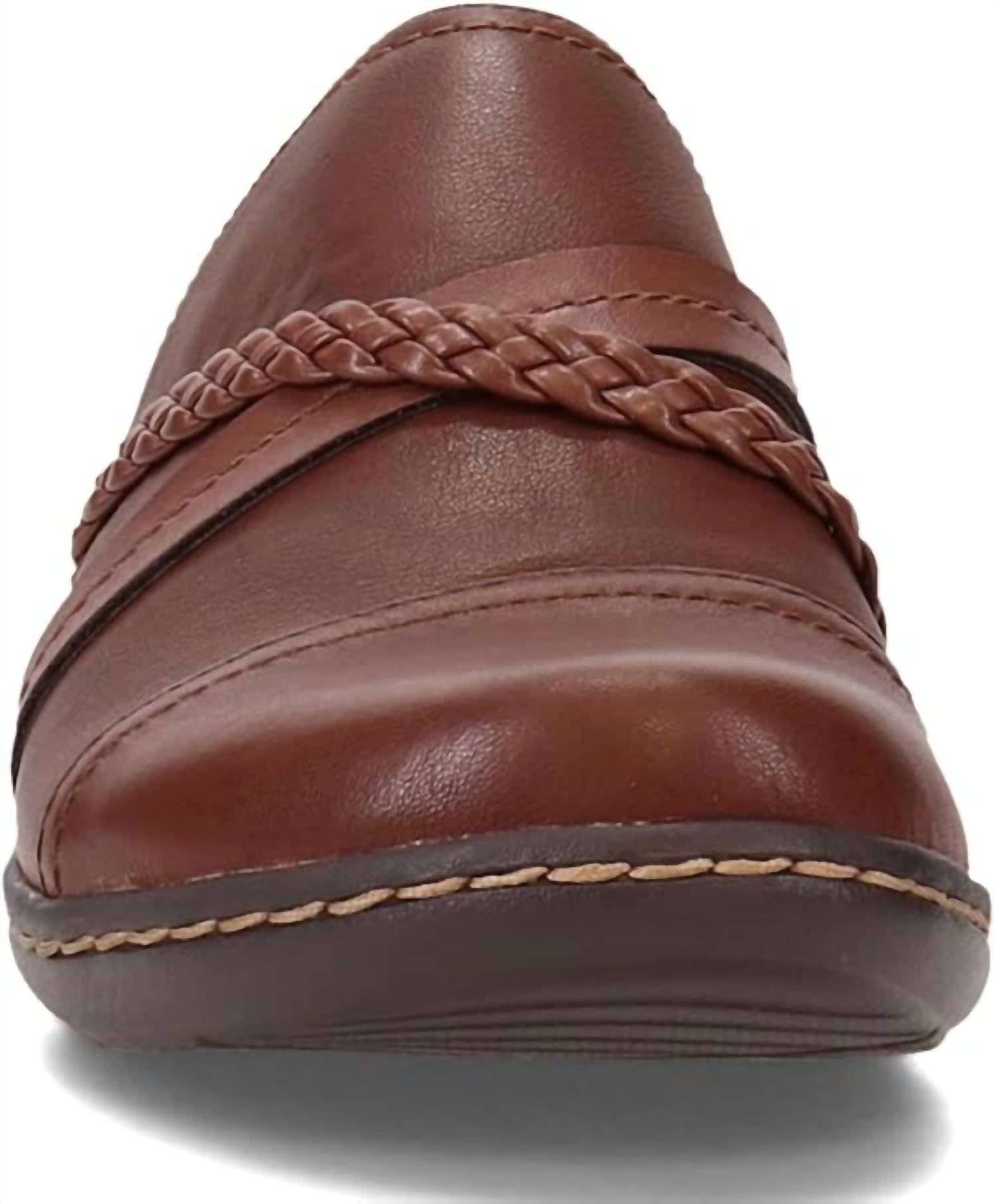 Stylish, comfy, and versatile. We can't find anything wrong with these. Meet the Women's Laurieann Step Clogs by Clarks, your go-to for casual, year-round style with a touch of 90s flair. With a leather upper adorned with a feminine braid and a draw-in classic round toe, these mules feature a low 1.4" flat heel perfect for effortless style and comfort. Closure: Pull On. Care: Machine washable. Outer material: Synthetic with an Ethylene Vinyl Acetate sole, perfect for long-lasting wear and moisture-wicking comfort. Ideal for spring getaways or Thanksgiving gatherings.