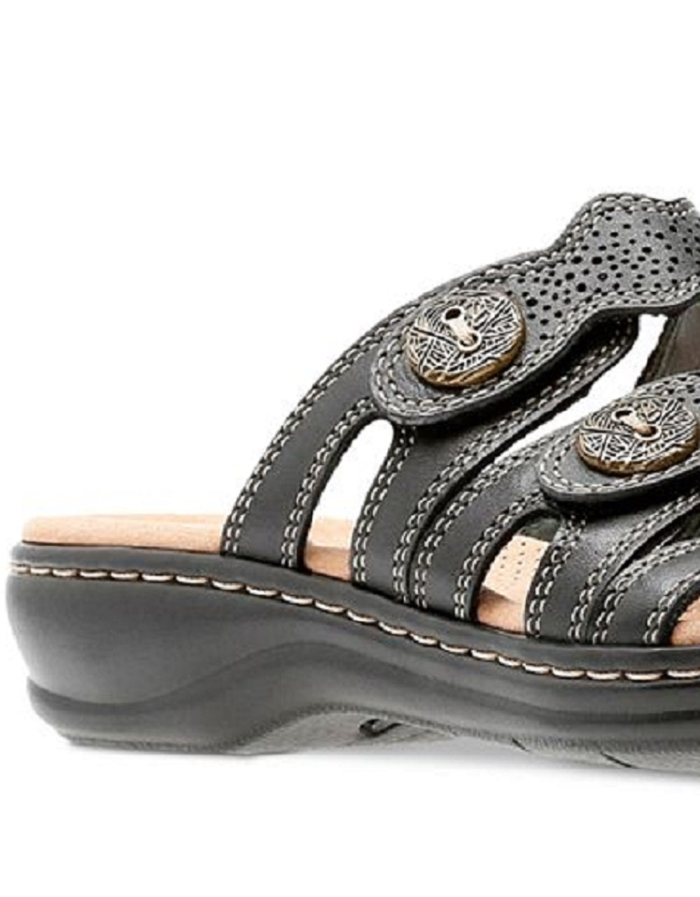Black Leisa Grace Tri-Strap Button-Accent Leather Sandal - Women| Put your fashionable foot forward with these strappy sandals flaunting on-trend button accents and a cushioned Ortholite footbed for sunny-day comfort|FeaturesOrthoLite triple-density cushioned footbed provides targeted cushioning to pressure pointsBendables Technology external and internal flex grooves enhance flexibilityProduct Details1|38'' heelLeather upperLeather liningMan-made soleImported