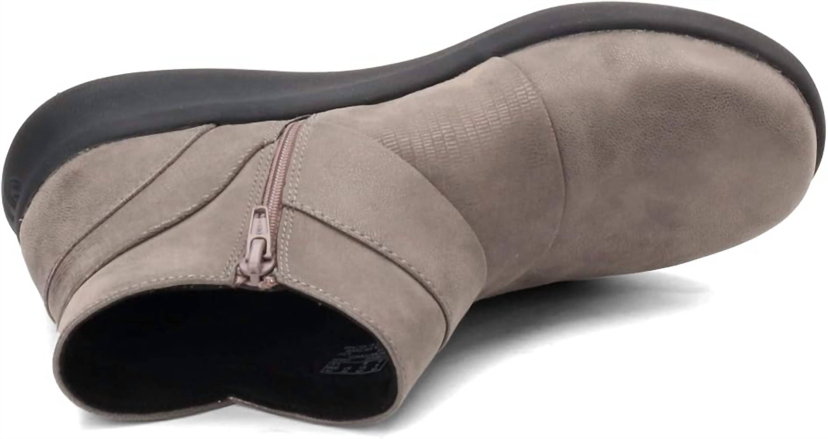 Say hello to the perfect, most versatile boot. The ankle height makes this style easily transition from day to night. Wear them with your favorite skinny jeans and tee for a more laid back look, or pair them with your favorite mini dress and jacket for a night out on the town. This low boot features a pleated upper that adds a handcrafted touch, while an inside zipper ensures easy on-and-off wear. Designed for comfort and style, it includes a soft, cushioned feel and a lightweight build. The ankle-height shaft and 9.05-inch circumference offer a secure fit, and the 1.7-inch heel provides a subtle lift. Finished with a durable rubber sole, it’s a versatile option for everyday wear.