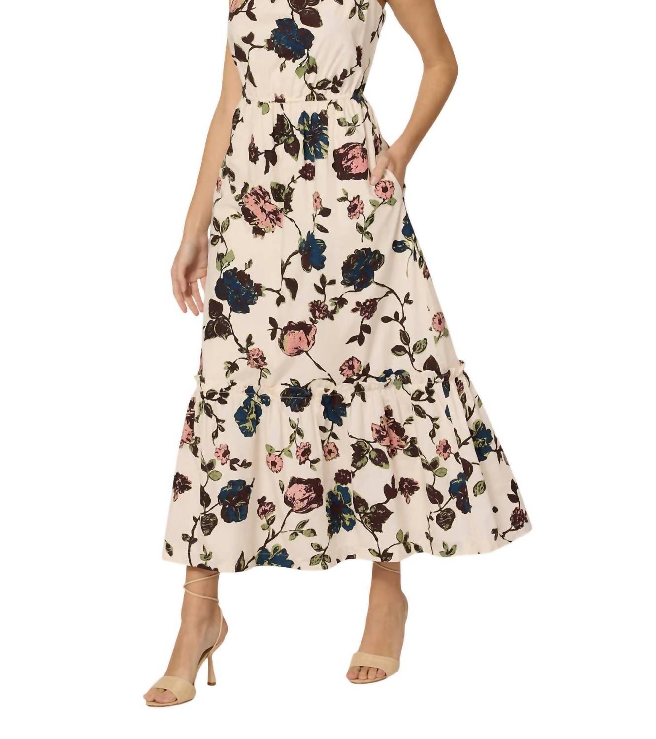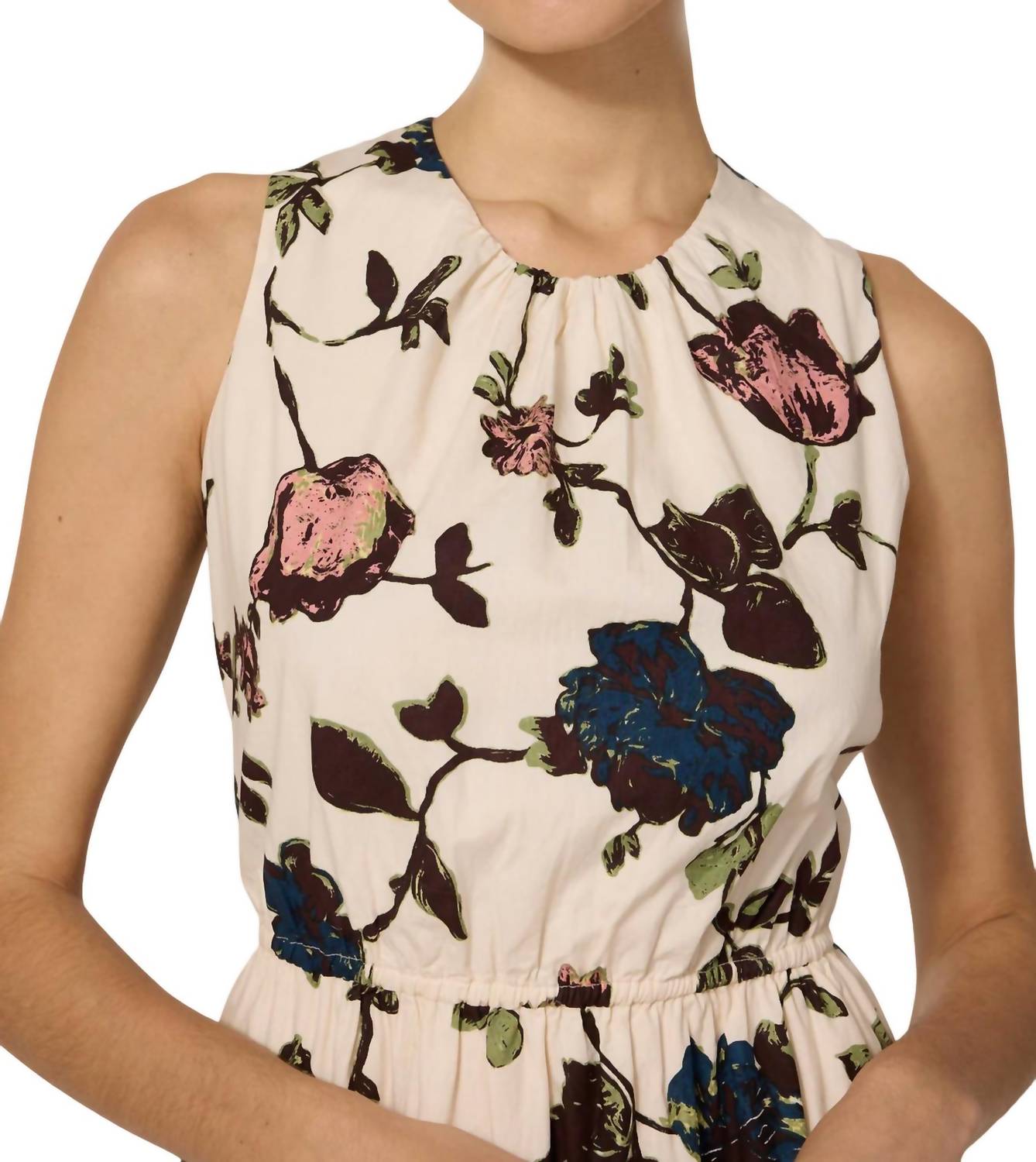 The perfect length dress does exist. Introducing the Carina Ankle Dress by Cleobella, a sleeveless midi dress crafted from GOTS certified organic cotton poplin with a captivating Jardin Print. Ethically handmade in India, this A-line silhouette features a crewneck and vintage-inspired floral pattern. The dress includes practical details like a keyhole button closure at the back, an elastic waistband for comfort, and pockets for convenience. To maintain its beauty, hand wash cold and lay flat to dry. Ana (5'9.5") and Mia (5'10") both wear size S.