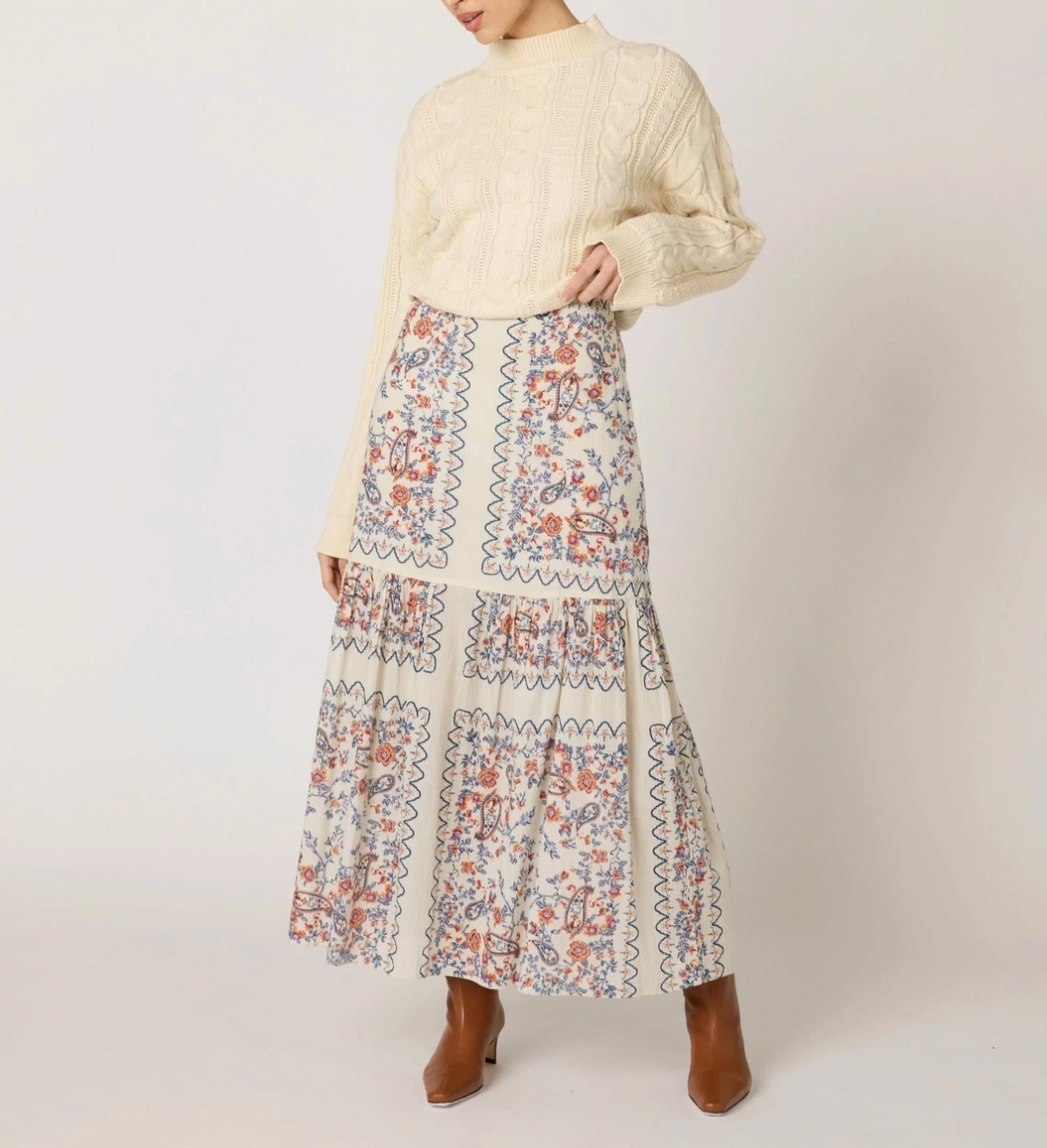 Flowy, comortable and stylish. This maxi skirt is a fan favorite. Elevate your wardrobe with the Marjorie Ankle Skirt by Cleobella, a perfect blend of style and comfort. Ethically handmade in India, this boho chic skirt is crafted from 100% GOTS certified organic cotton mulmul, ensuring a lightweight and breathable feel. It features an ankle-length, patterned silhouette with a shirred tiered design and a smocked back waistband, finished with a zip closure for a comfortable fit. Care for this beautiful multi-color piece with machine wash and line dry instructions, ideal for Spring evenings or Mother’s Day celebrations.
