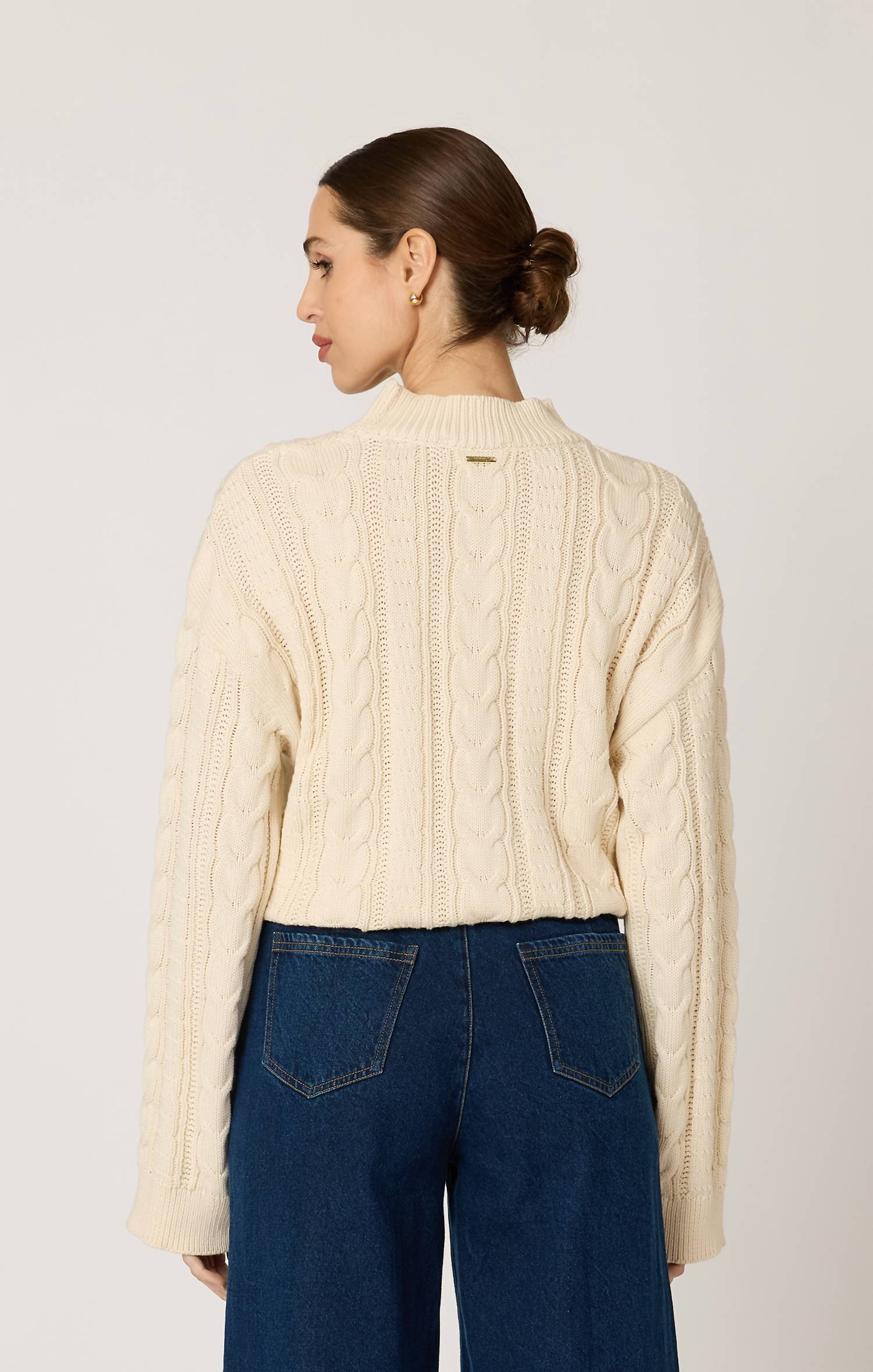 Stay cozy and stylish with the Women's Janie Sweater by Cleobella, crafted for effortless charm and comfort. This ivory cardigan features long sleeves and a playful textured pattern, making it ideal for fall adventures or vacation getaways. Designed with a mockneck and convenient pull-on closure, it's perfect for layering or solo wear. Embrace the warmth and fun with this chic streetwear essential.