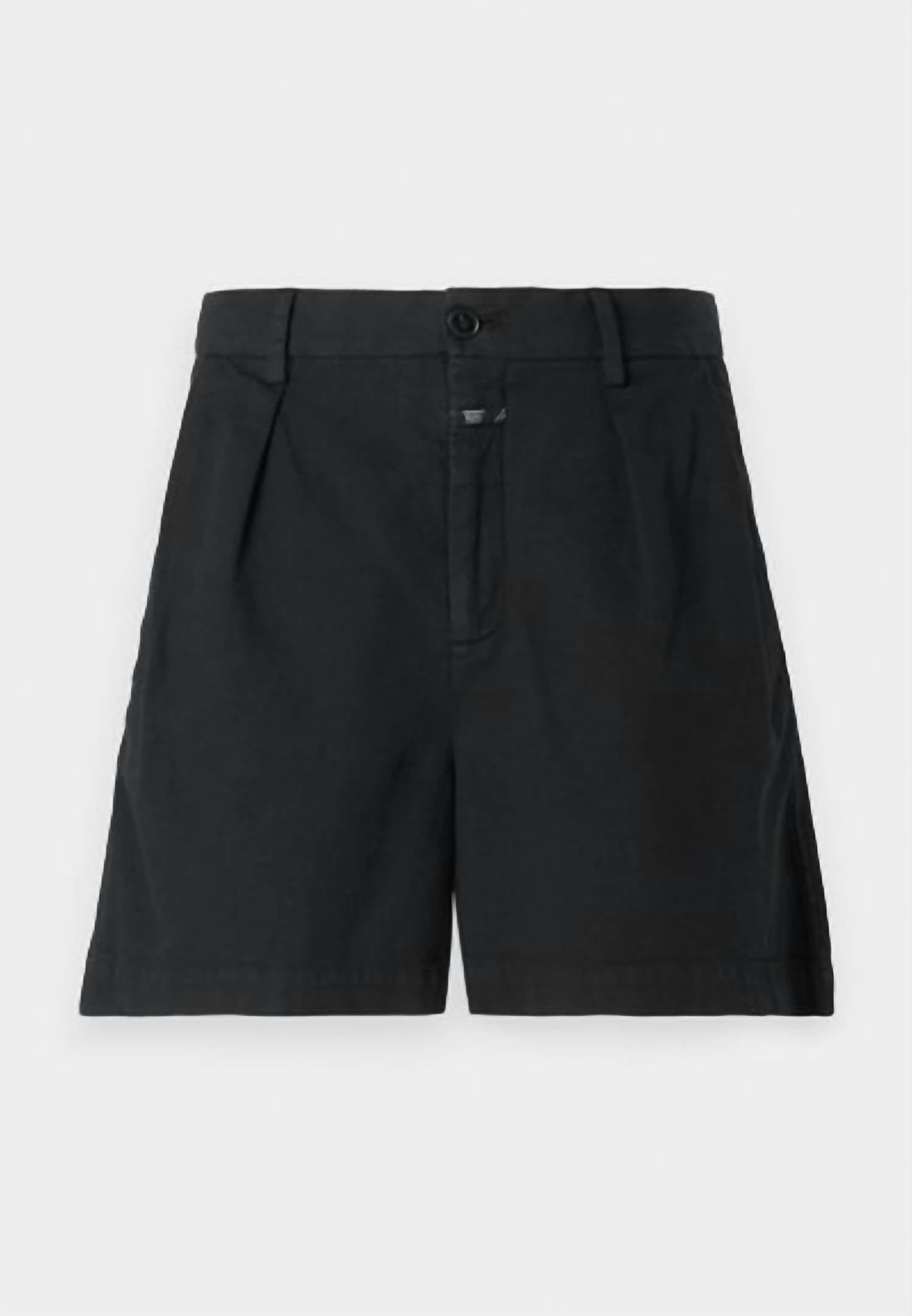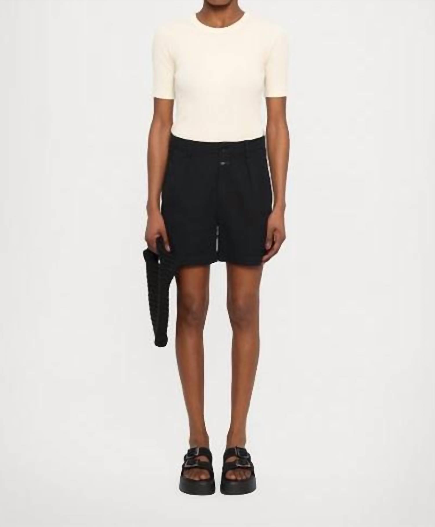 Fit to perfection, we love these high-waist shorts and you will too. Elevate your wardrobe with the Closed Revyl, a pair of black shorts that effortlessly blend Italian craftsmanship and premium materials. These elegant shorts feature a cotton blend composition made up of 49% cotton, 31% linen, 19% lyocell, and 1% elastane, offering a luxurious feel while ensuring comfort. Designed with a button closure, they boast box pleats, side pockets, and piped pockets, enhancing both style and functionality. Crafted in Romania by Texdata, these shorts are easy to care for with a machine wash, making them a perfect addition to your 90s-inspired spring travel wardrobe. Inside leg length: approx. 4.7" (size 27). Model height: 1.78 m, wearing size 27.