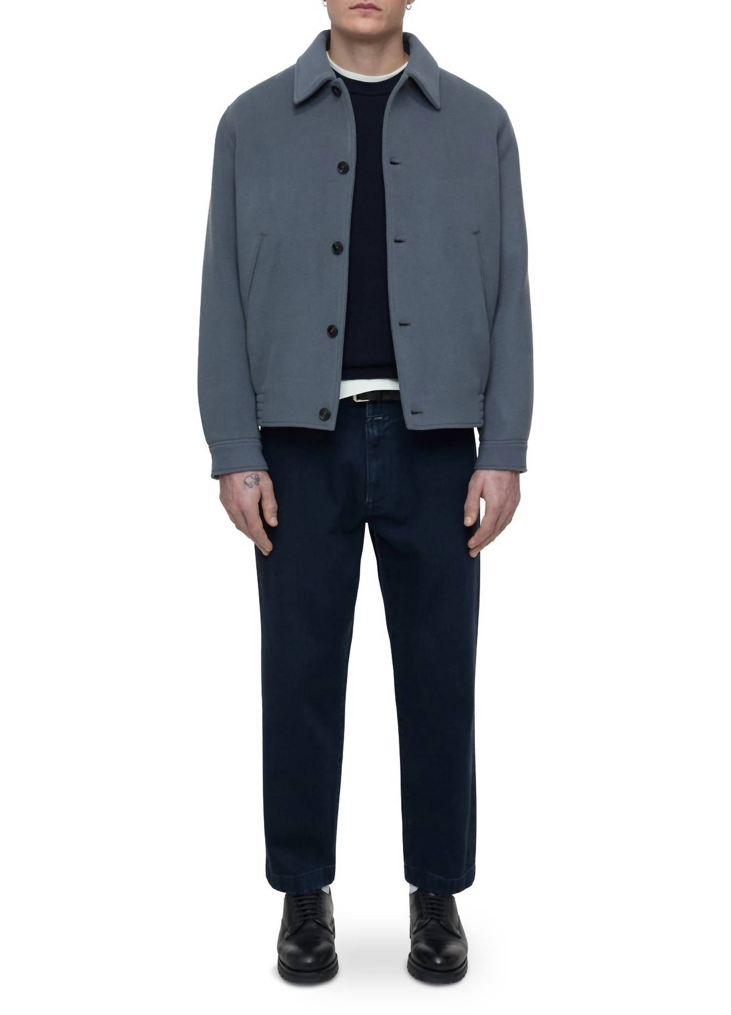 Elevate your wardrobe with the CLOSED Varsity Blouson Jacket, a stylish addition to the Fall Workwear trend. This men's jacket in a washed stone hue features long sleeves and a solid pattern, perfect for evening events like Father’s Day. Crafted from 75% virgin wool and 25% polyamide, it provides warmth and versatility with its button closure. Easily maintain this piece with machine wash and tumble dry instructions.