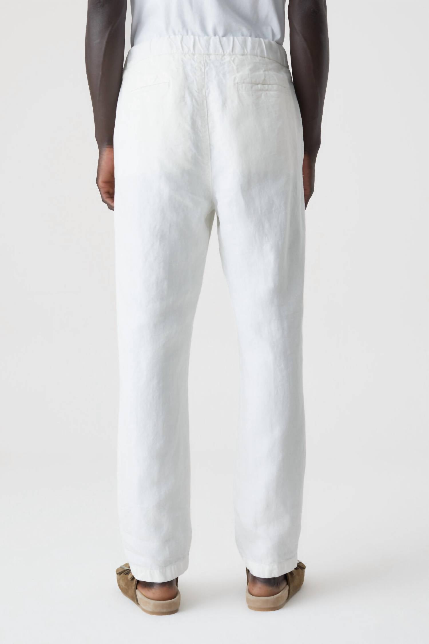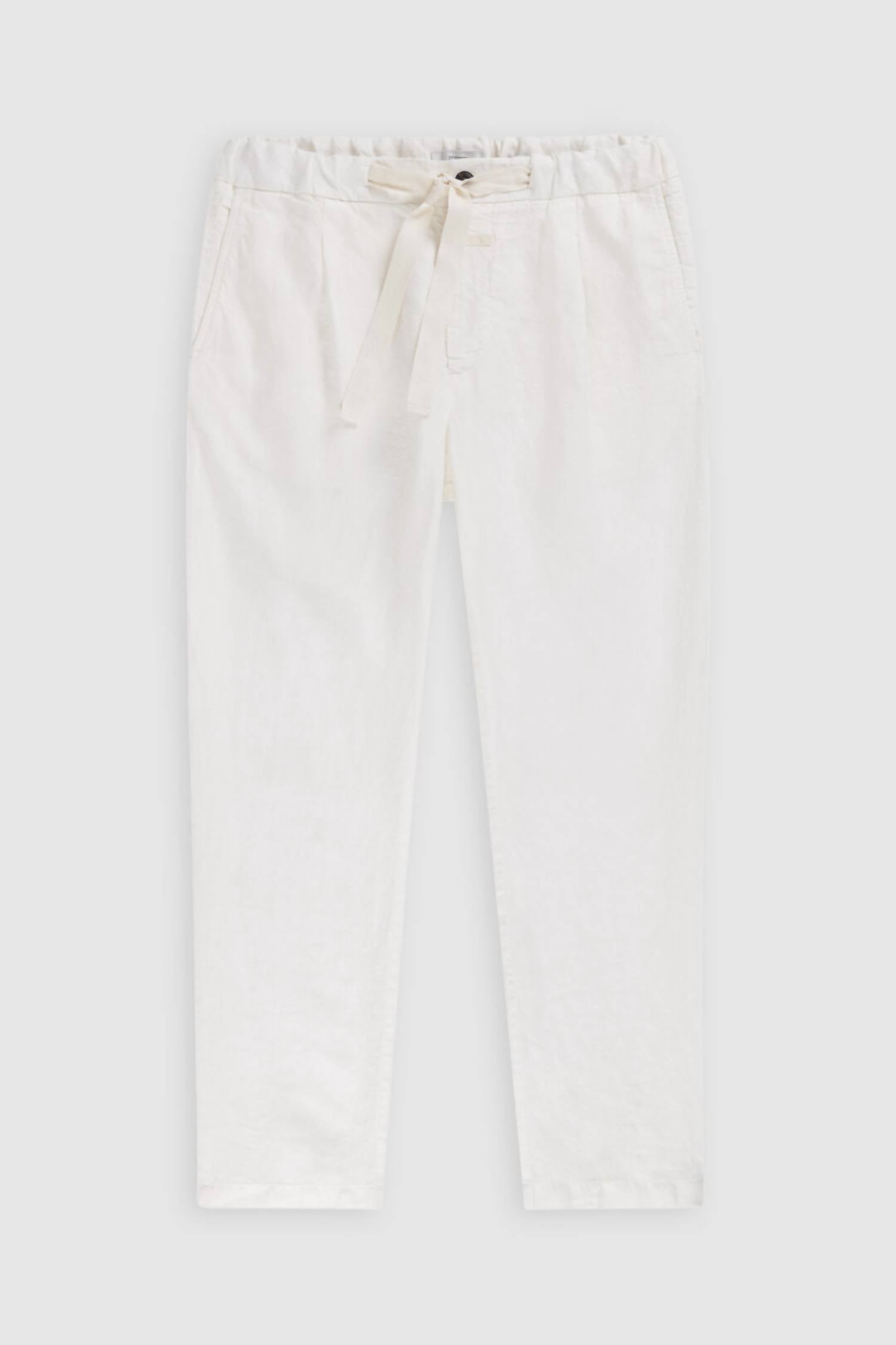 Meet the Vigo Tapered Leg Pants by CLOSED, crafted for a sleek and minimalist look in ivory. Made in Turkey from 100% pure Italian linen, these pants offer a regular fit with a mid-rise waist and a cropped length of approximately 28”. They feature a button closure along with an elastic waistband, drawstring, side pockets, and a zip for versatile styling. To maintain the garment's integrity, simply machine wash as needed. Front rise measures around 12.2” and leg opening is about 6.7”, with an overall inner leg length of 28” for a comfortable fit.