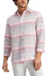 Club Room Men's Regular Fit Stripe Linen Shirt Pink Size Medium