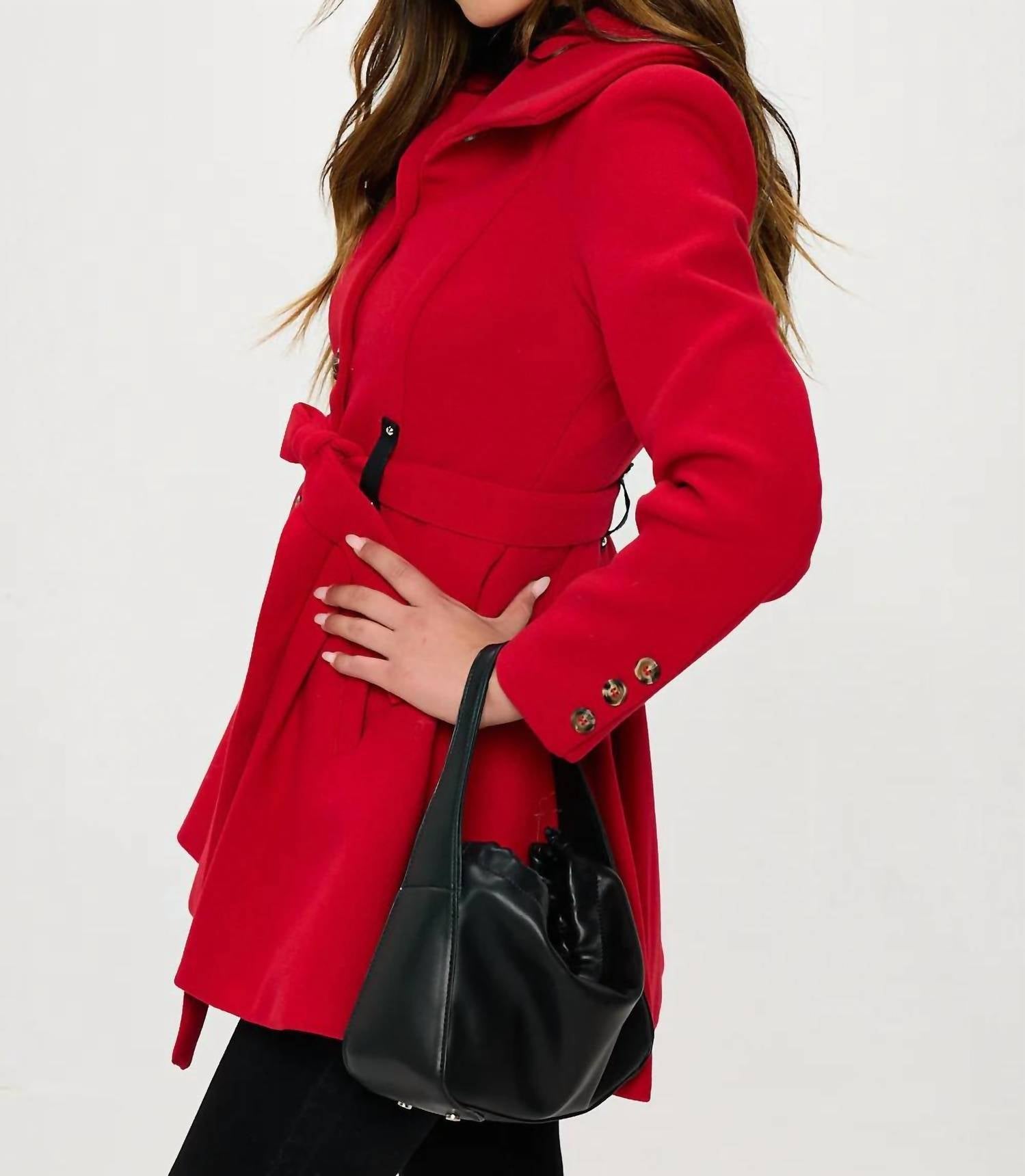 Classicly chic, this is the kind of trench coat that never goes out of style. The Coalition LA A-Line Vegan Wool Coat in striking red is a perfect blend of ethical fashion and modern style. With long sleeves and a solid monochrome pattern, this coat features a flattering A-line silhouette that is ideal for a winter vacation or Christmas occasion. Crafted from high-quality vegan wool, it includes pockets and a button closure. For care, dry clean only to maintain its luxurious feel and appearance.