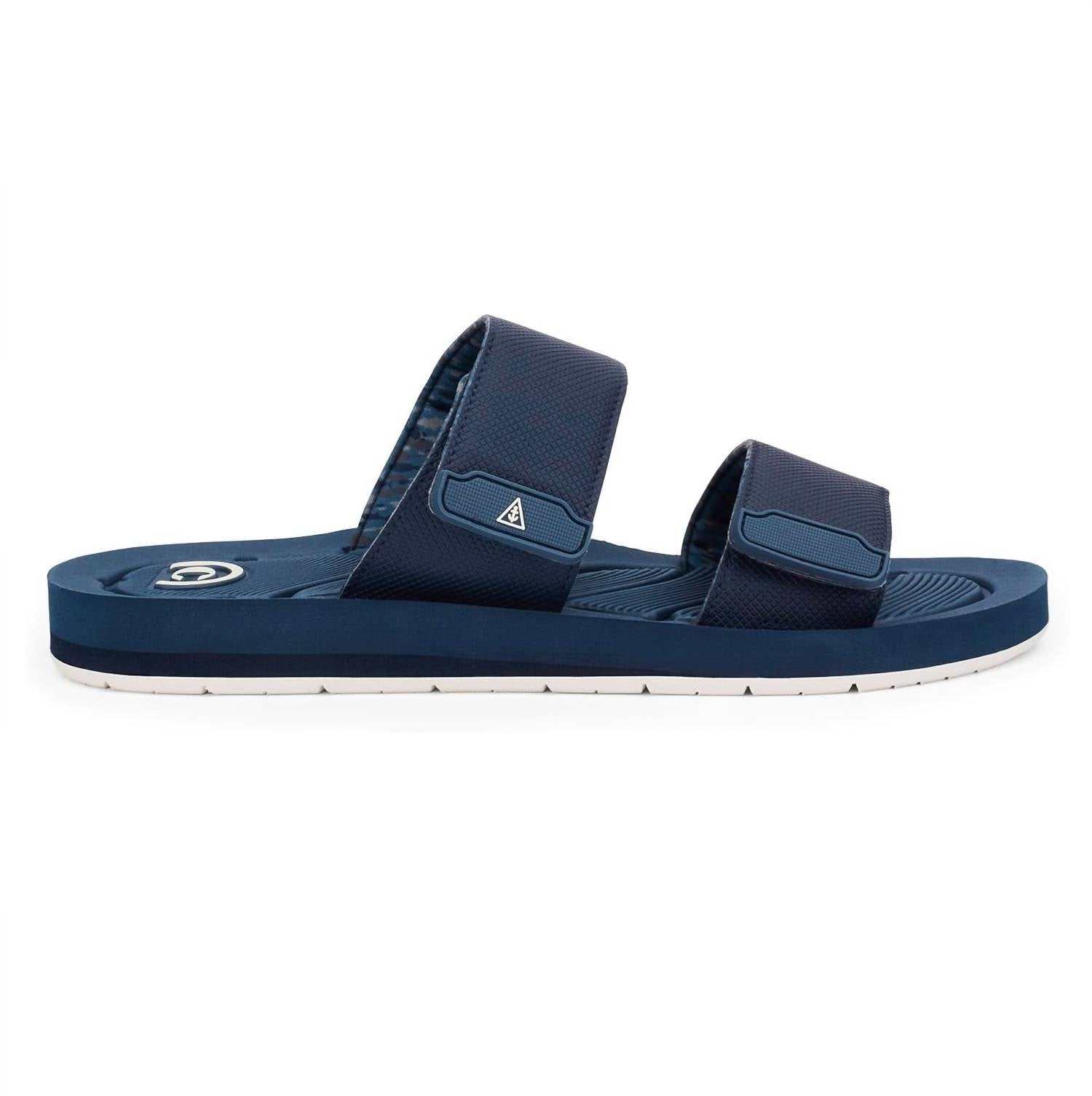 Step into comfort and style with the Men's Odyssey Sandal by Cobian, an ideal choice in a striking blue shade. Featuring a round toe design and slip-on style with convenient double stay-put strap closures, these sandals are crafted with a polyurethane upper, microfiber lining, and a durable rubber sole. The molded EVA top sole ensures excellent water management and grip, complemented by an engineered drainage system and non-marking rubber outsole for exceptional traction. Ideal for adult men, these sandals are flat, providing a relaxed fit perfect for boat-friendly adventures.