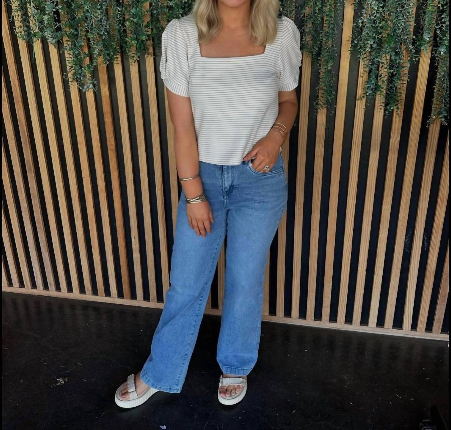 Pair these wide leg jeans with mules, slides or your favorite strappy sandals. Experience the EverStretch Wide Leg Jeans by COCO + CARMEN, a perfect fusion of comfort and style in a trendy medium wash. These high-rise jeans offer a relaxed fit with a wide leg silhouette, crafted from a cotton blend of 70% cotton, 23% polyester, 5% viscose, and 2% spandex for a 4-way stretch that ensures exceptional comfort. They are designed with functional pockets and a convenient button and working zipper closure. Care instructions: Machine wash. Models: Olivia (5’7”, Bust: 36”, Waist: 32.5”, Hips: 41”) wearing size Medium and Madison (5’7”, Bust: 38”, Waist: 34.5”, Hips: 42”) wearing size Large, making them ideal for effortless travel or embracing '90s fashion this spring.