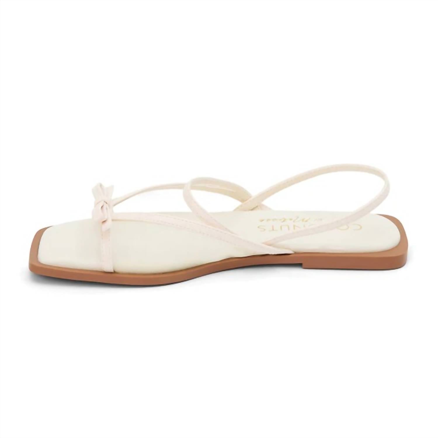 Flowy dresses, cropped pants, and even jumpsuits... this sandal works with them all! Step into style with the Women's Tropea Slingback Sandal by Coconuts by Matisse, perfect for those summer dinner parties. This minimalist sandal features a vegan-friendly design with a synthetic leather and mesh upper in chic ivory. Enjoy the comfort of a padded insole and the ease of a slip-on style. The flat heel and open toe make it ideal for warm-weather occasions.