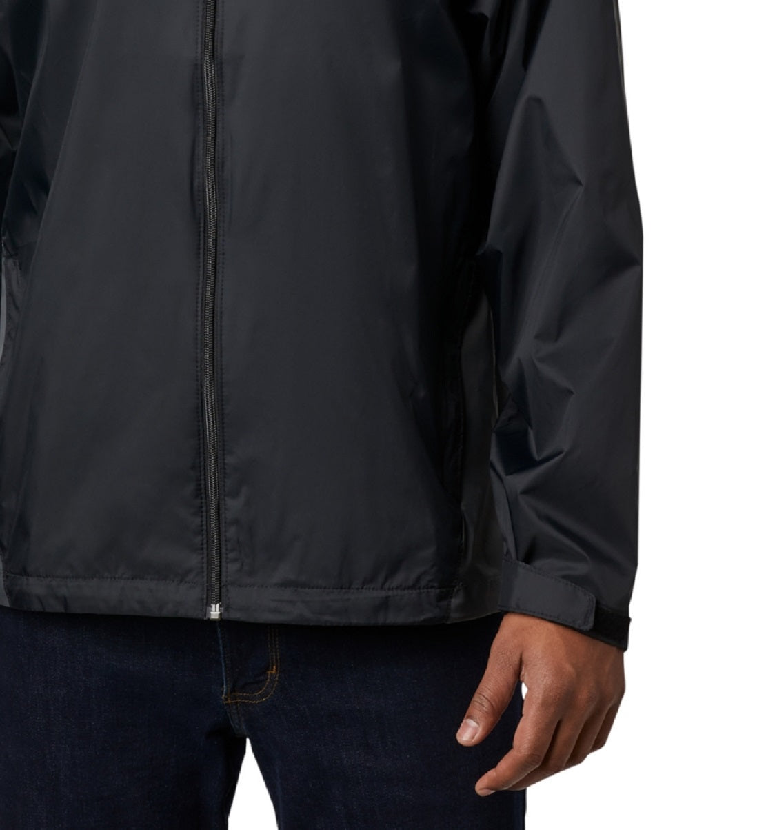 Draw cord adjustable hem|Imported|Water resistant fabric|Packable into chest pocket|Adjustable sleeve cuffs|Zippered hand pockets|Stow-away hood