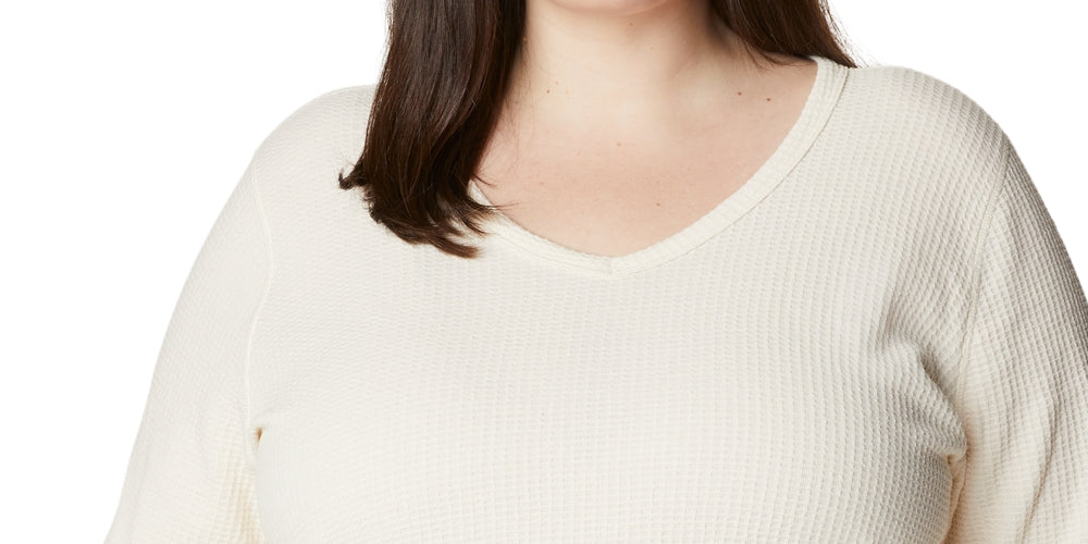 Stay cozy and comfortable on your next hike in this plus size thermal top from Columbia| made with a soft waffle knit texture. | NOTE; Currently| V-neck| Cotton/polyester| Machine washable