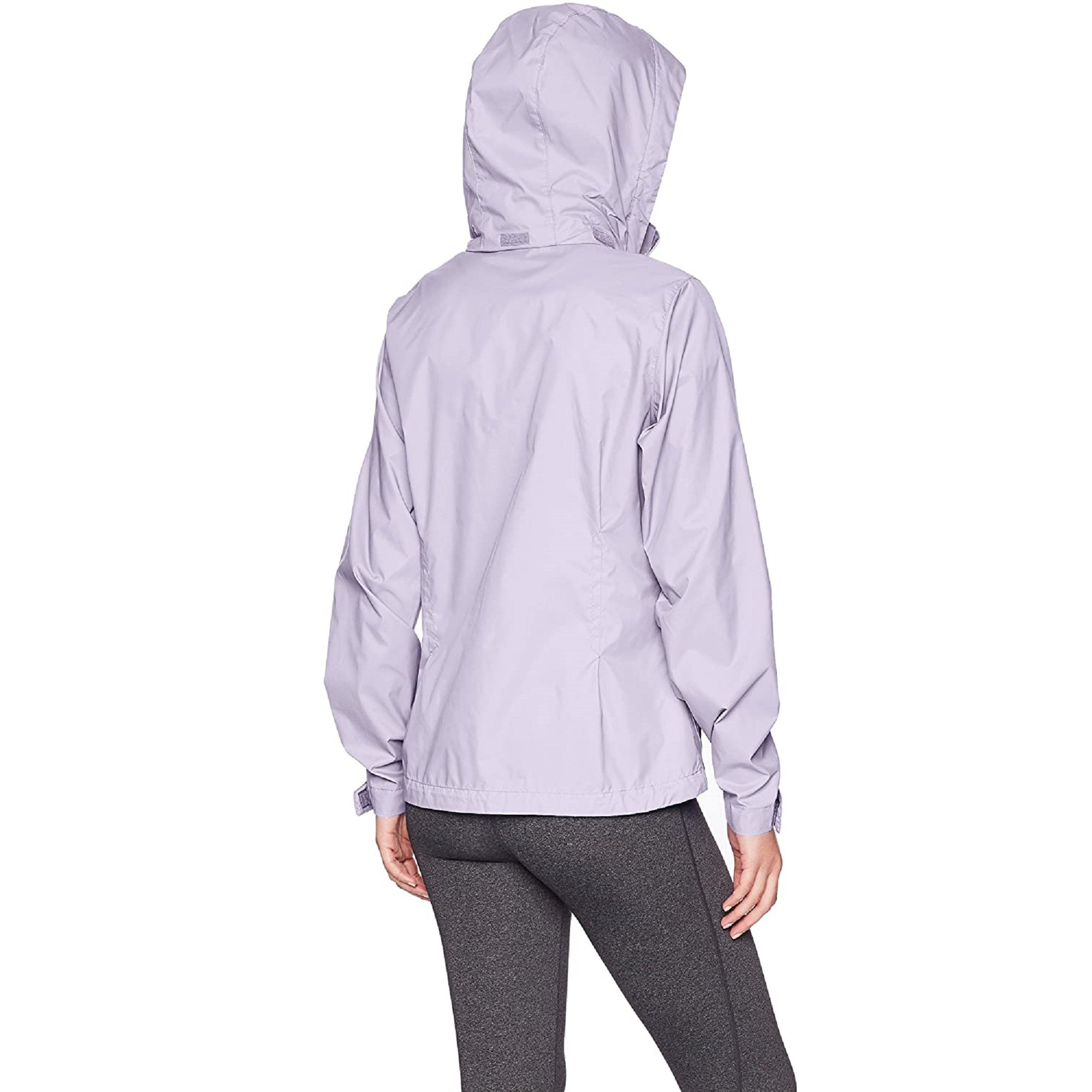 An adjustable hood| hem and cuffs let you create the perfect amount of coverage in this plus size jaSize; 3X|Color; Purple|Waterproof.|Adjustable hood.|Shell and lining; nylon; mesh lining; polyester.|Machine washable.