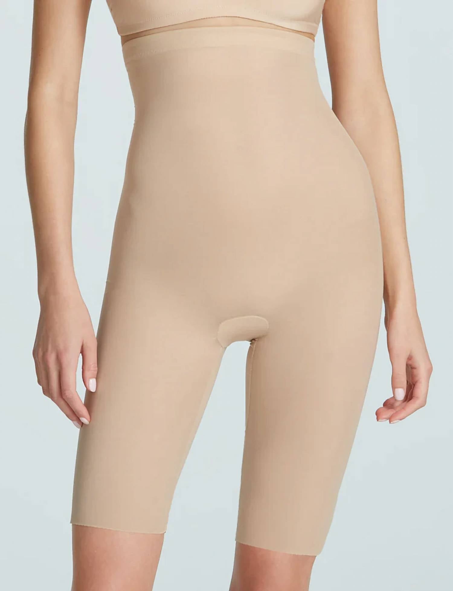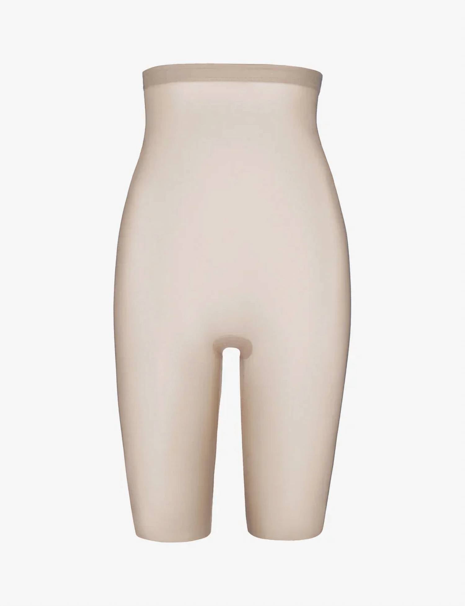 Fit to perfection, we love these high-waist shorts and you will too. Discover the Featherlight Control Long Short by Commando, engineered for optimal comfort and style. These beige shorts offer incredible breathability and moderate to high compression, crafted from 52% Polyamide and 48% Elastane with a pull-on closure for ease of wear. The design features raw-cut edges and a 100% cotton gusset for a smoothing effect that feels natural, not restrictive. Crafted for easy maintenance, they are machine washable, promising practicality for everyday wear.