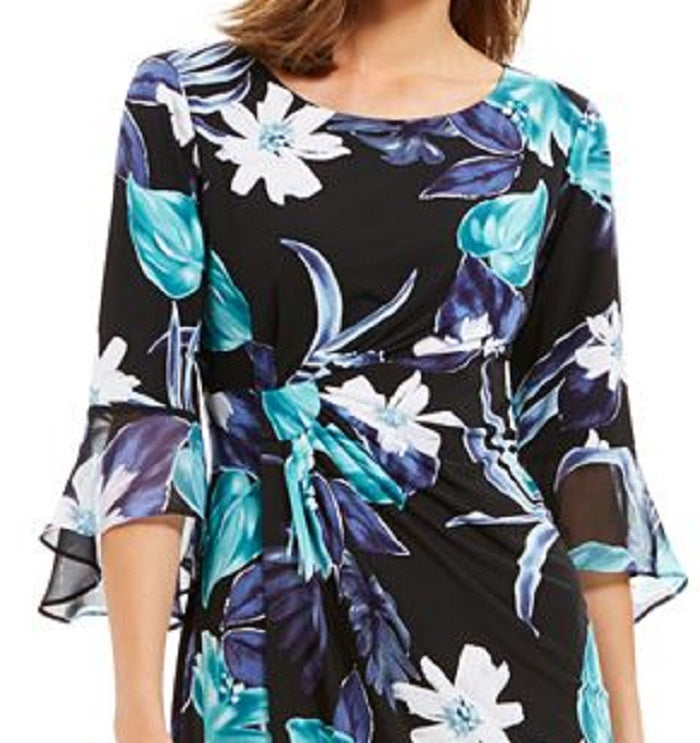 Connected Women's Floral Print Ruched Dress Blue Size 8 Petite