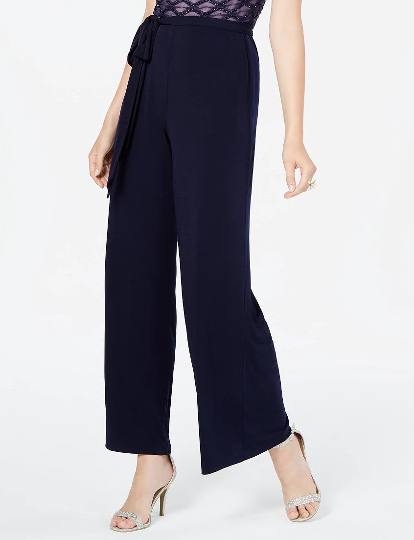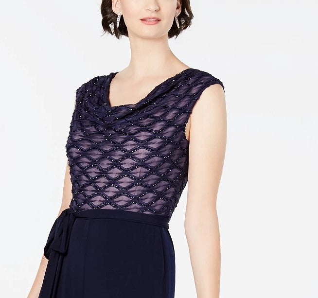 Approx. inseam: 31"|Cowl neckline; hidden back zipper closure|Glitter illusion at bodice; removable sash belt|IMPORTANT NOTE: This item arrives with a return tag attached and instructions for removal. Once the tag is removed from the dress, this item cannot be returned.|Self and contrast: polyester/spandex; lining: polyester