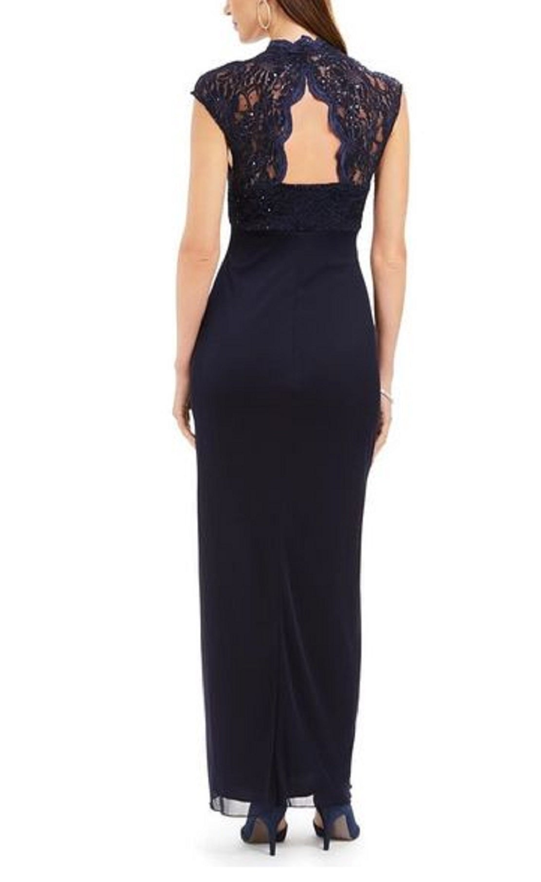 Rein in the compliments| Ruffles and scalloping add noticeable detail and feminine allure to this Connected gown