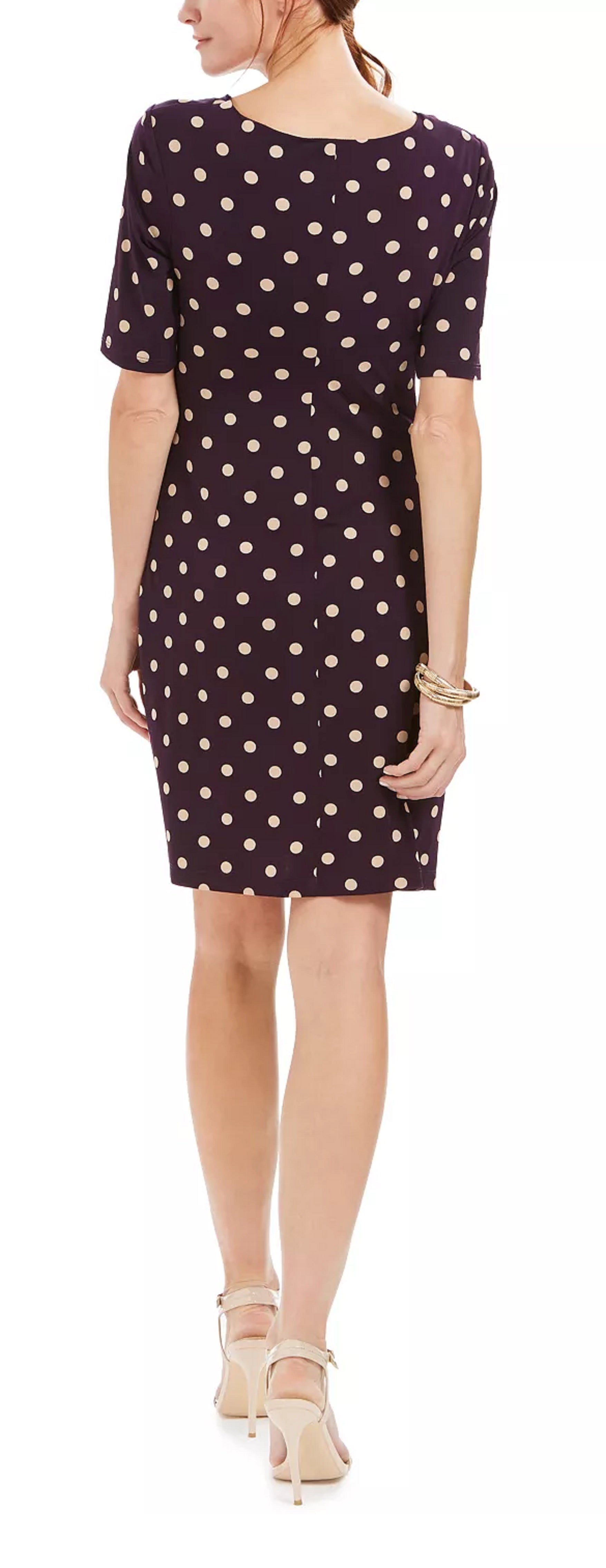 Connected Women's Ruched Polka Dot Sheath Dress Purple Size 12 Petite