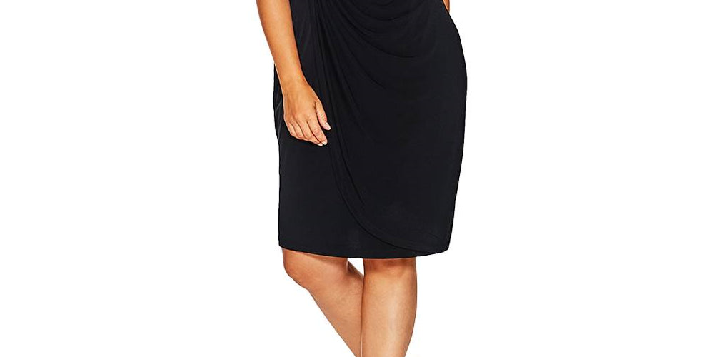 Connected Women's Sequined Lace Draped Dress BlackSize 18W