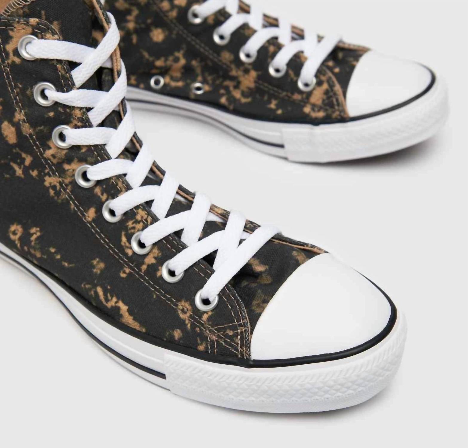 Step into timeless style with the Converse Chuck Taylor All Star Camouflage Shoes, a unisex high-top sneaker exuding classic appeal in a black and brown canvas dip-dye design. The shoes feature the iconic Chuck Taylor badge on the inner ankle and a durable vulcanised rubber toe cap and outsole, complemented by breathable eyelet vents for added comfort. Fasten them securely with the lace-up closure, and enjoy the dependable grip of the geometric tread. Crafted with a 100% textile lining and upper, these sneakers offer resilience and style for the winter season.