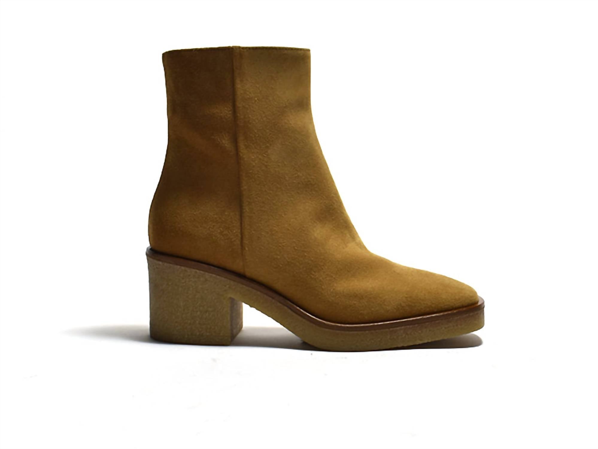 Say hello to the perfect, most versatile boot. The ankle height makes this style easily transition from day to night. Wear them with your favorite skinny jeans and tee for a more laid back look, or pair them with your favorite mini dress and jacket for a night out on the town. Step into style with the Women's Brielle Bootie by CORDANI, crafted in exquisite almond suede. This Italian-made ankle boot boasts a squared toe and a comfortable 2.5-inch crepe block heel. The addition of an inside zipper with a stretch panel ensures a snug fit, complemented by a leather lining and sturdy crepe rubber sole. Perfect for any occasion, these booties are a must-have for your collection.